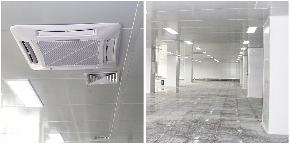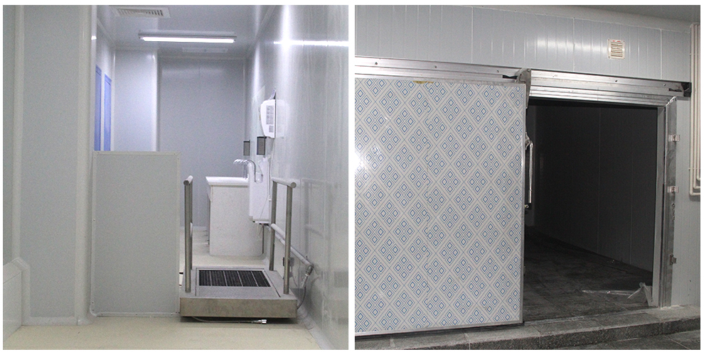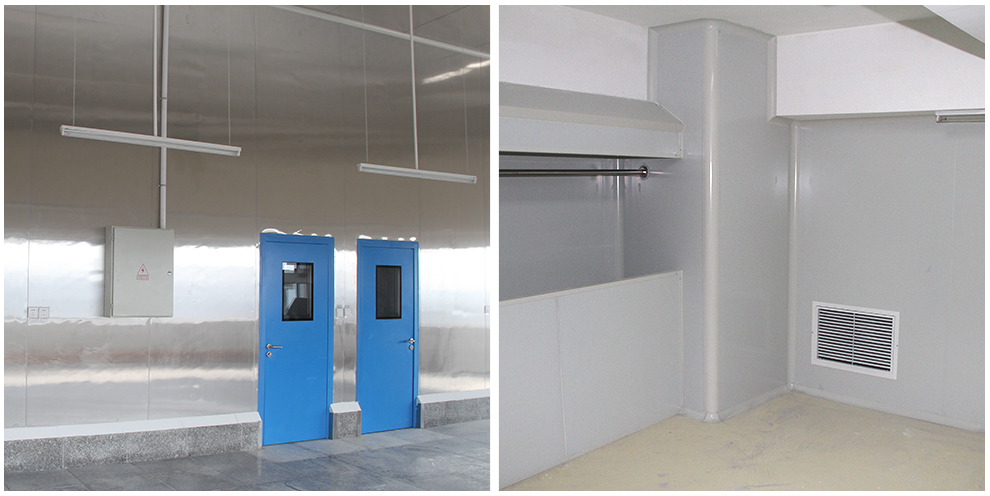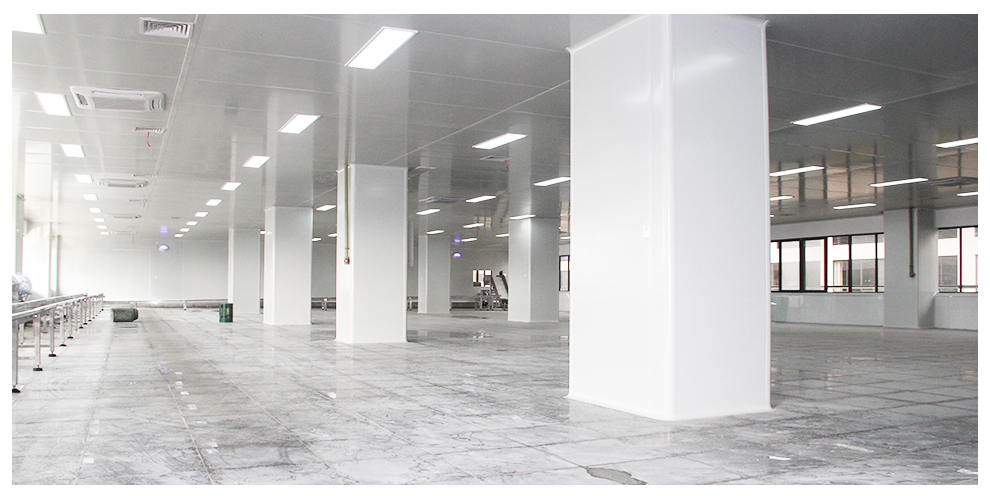 四川品品食品有限公司車間為華盛興邦設(shè)計、裝修,車間裝修建筑面積2800平方米,主要生產(chǎn)肉制品。華盛興邦承接的是其四號牛板筋生產(chǎn)車間,該工程地面采用金剛砂耐磨+固化地坪、花崗石地坪、PVC地坪三種方案,隔墻采用凈化彩鋼硅巖板、凈化不銹鋼硅巖板兩種材質(zhì),門窗均采用鋼質(zhì)門潔凈門、不銹鋼潔凈門、潔凈窗,以及臭氧消毒、通風(fēng)、制冷、排煙工程。