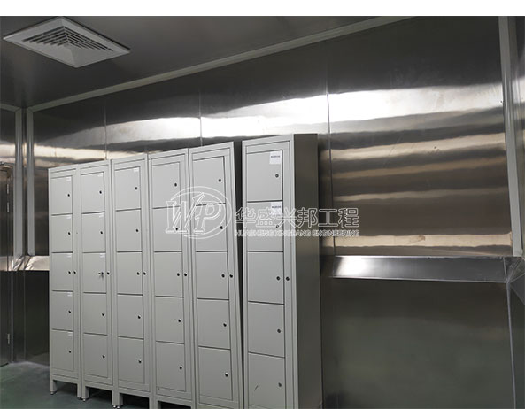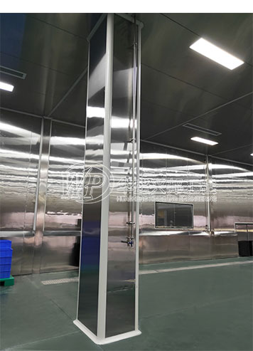 其中,車間墻面均采用雙面不銹鋼中空玻鎂板,A1級防火板材。便于車間沖洗,防潮,防水,耐腐蝕。吊頂也是不銹鋼板材,整個車間猶如“鐵桶”一般。