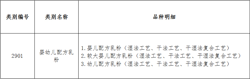 嬰幼兒配方食品類別編號及名稱:2901嬰幼兒配方乳粉