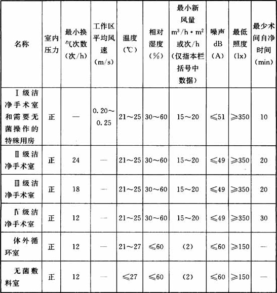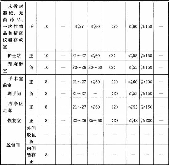 注:1 負壓手術室室內壓力一欄應為“負”。