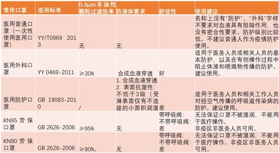 常見類型口罩的區別和使用建議