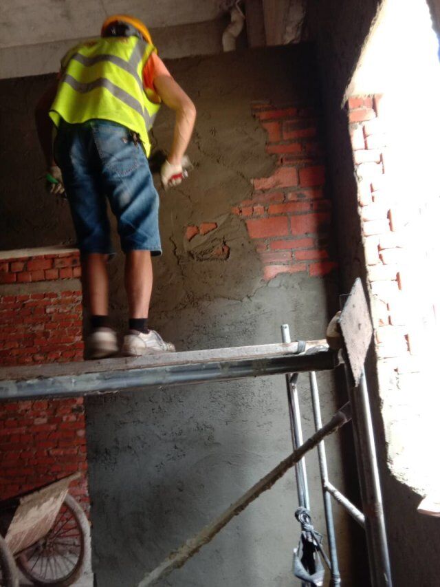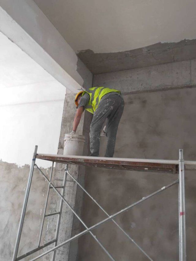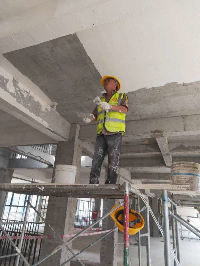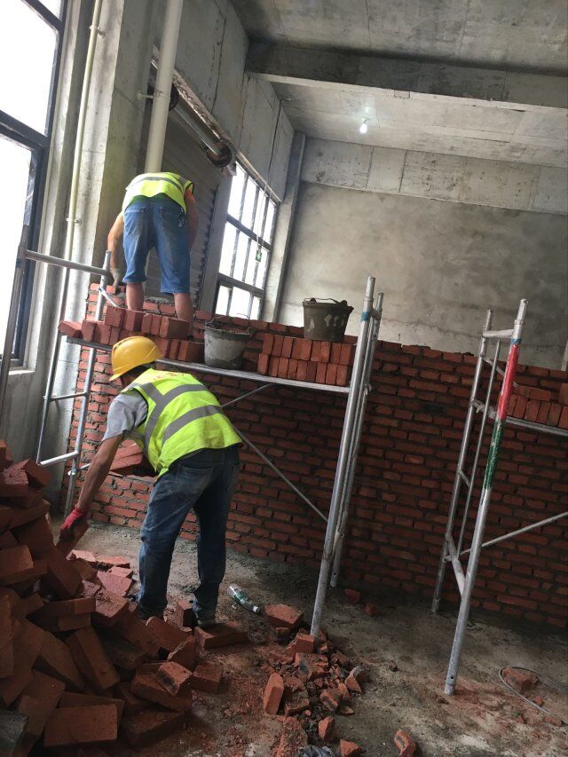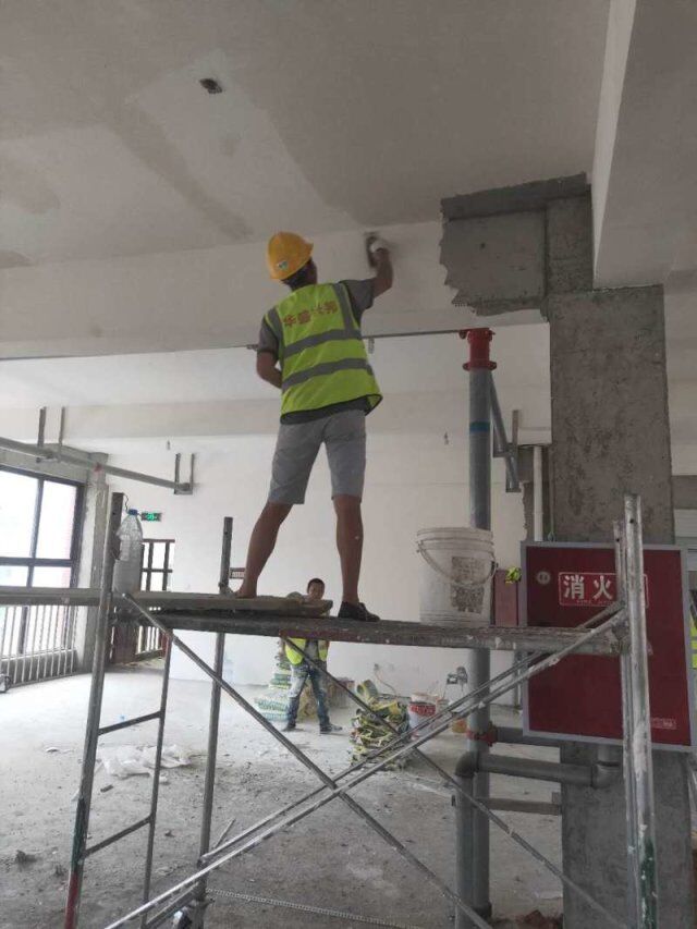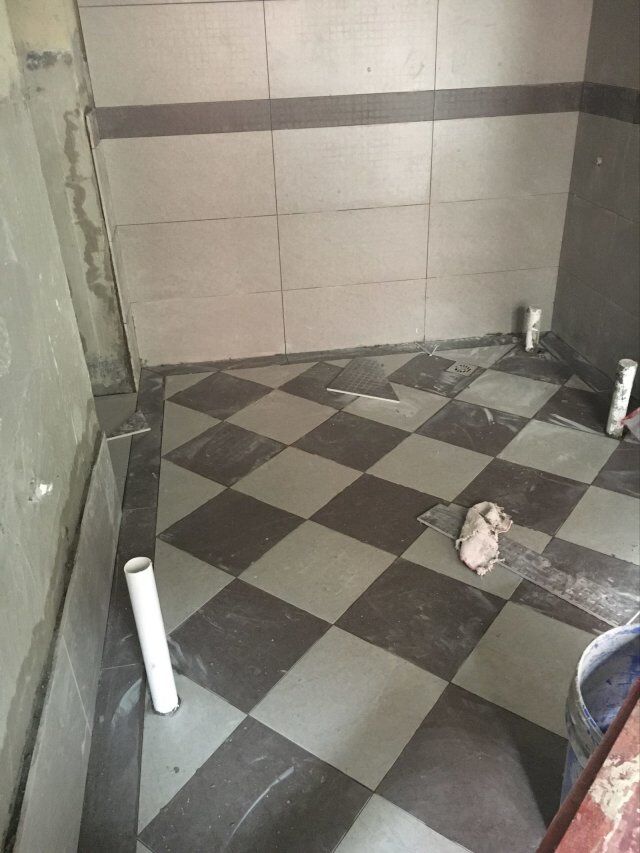 現(xiàn)場地坪施工,辦公室貼磚
