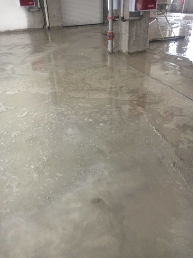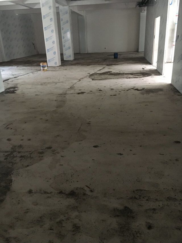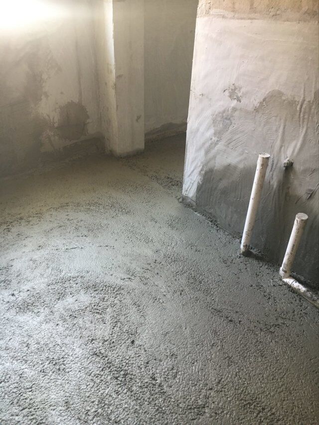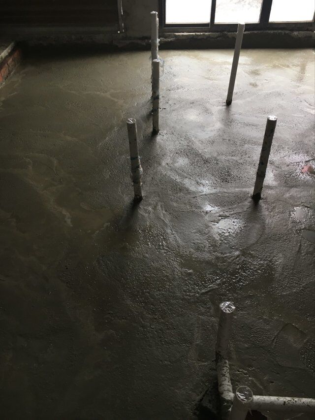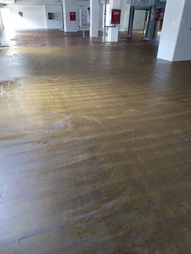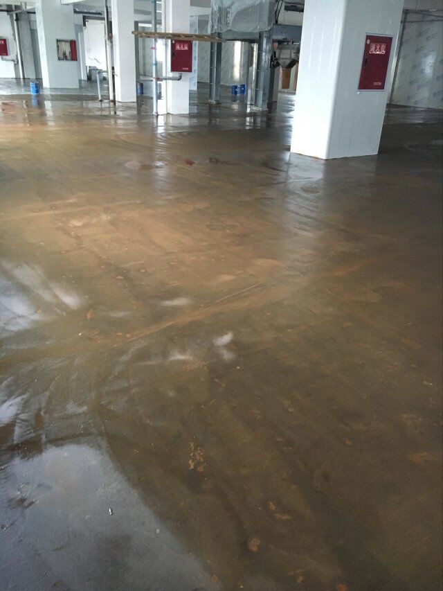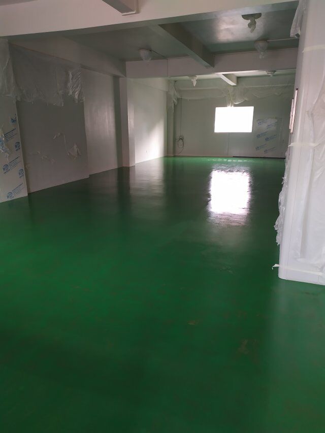 四川美料美味食品科技有限公司廠房裝修現(xiàn)場,地坪施工中