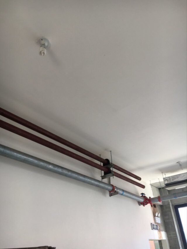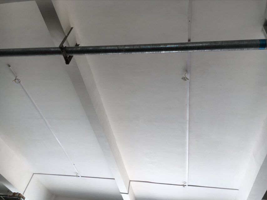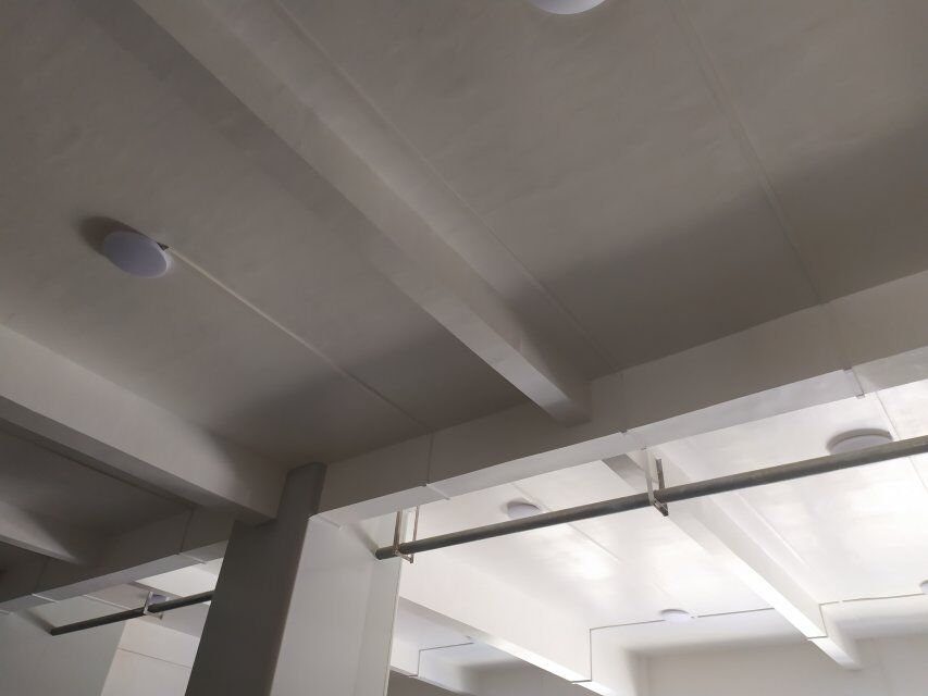 四川美料美味食品科技有限公司廠房施工現(xiàn)場,紫外燈安裝完成,二層地面施工