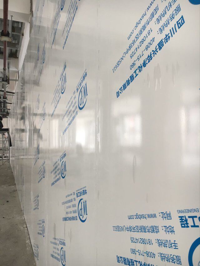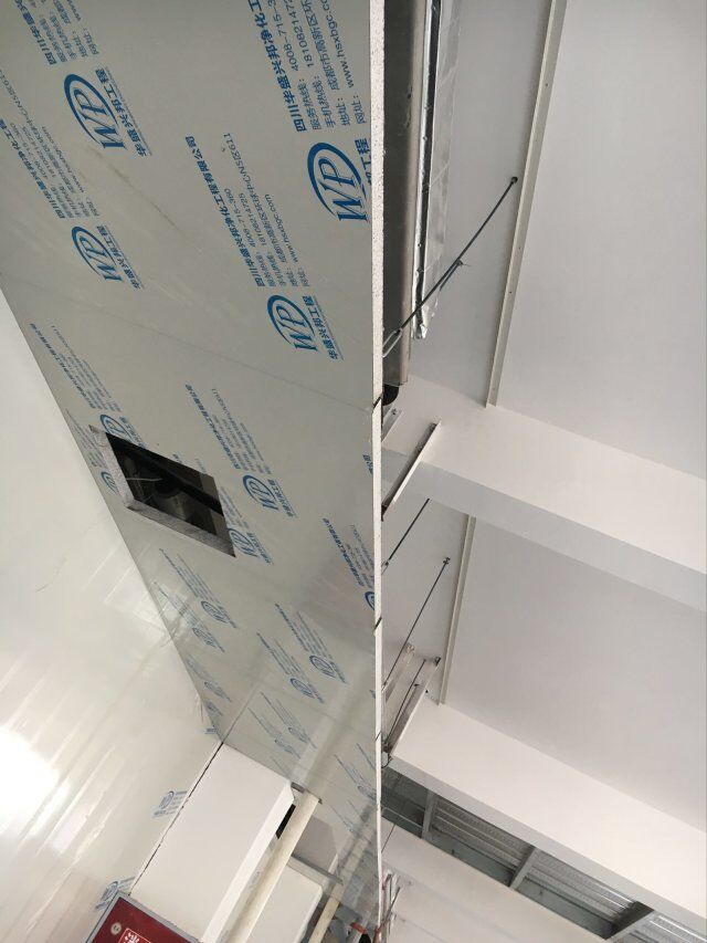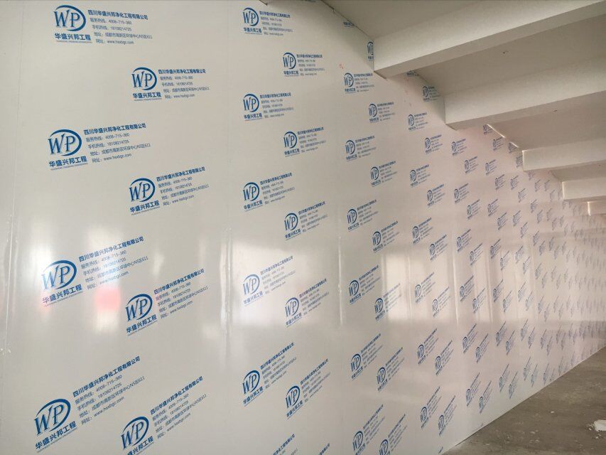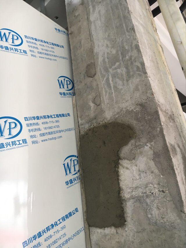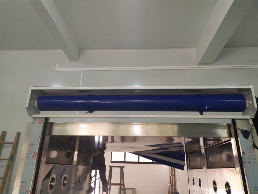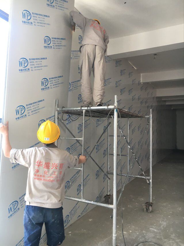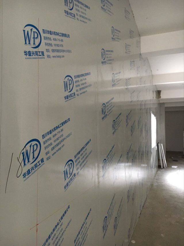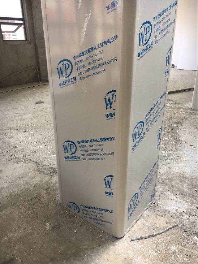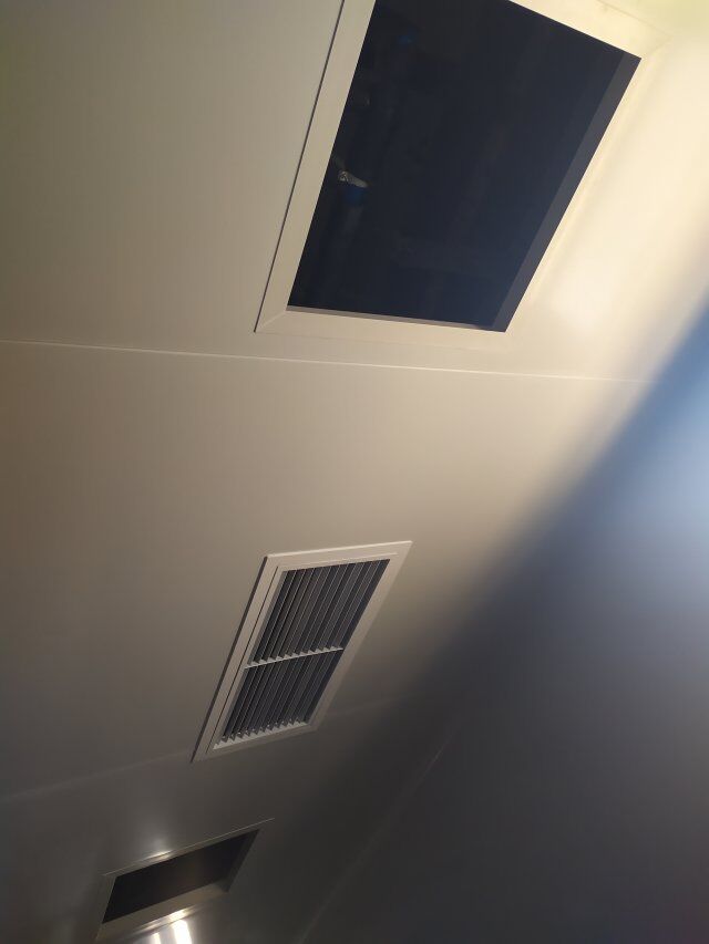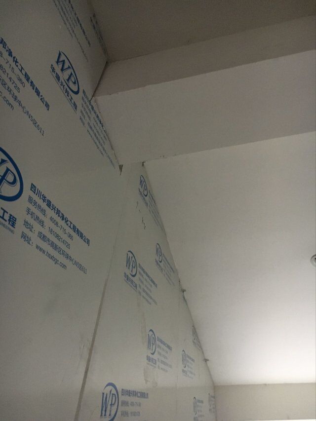 四川美料美味食品科技有限公司廠房裝修現(xiàn)場,風(fēng)淋室調(diào)試安裝完成,板材包邊完成
