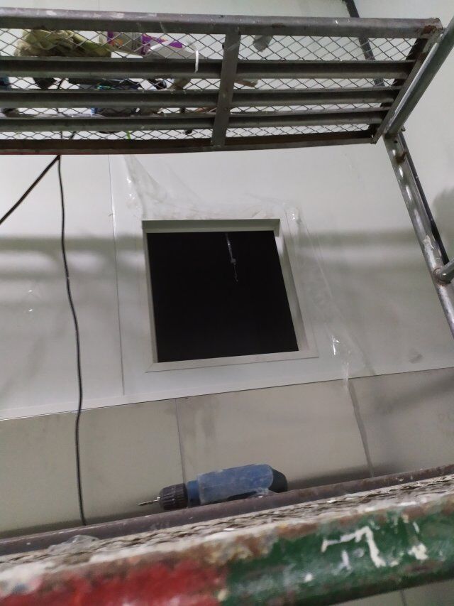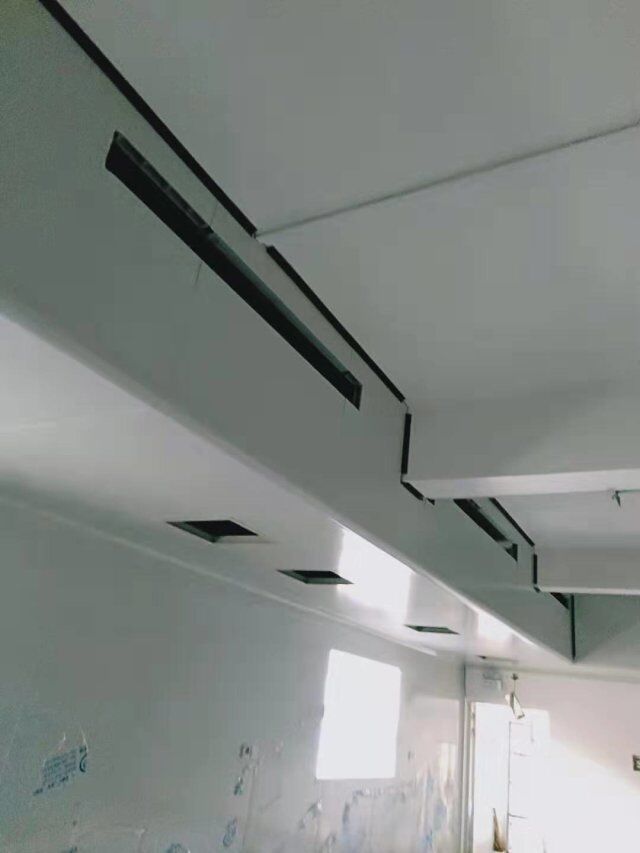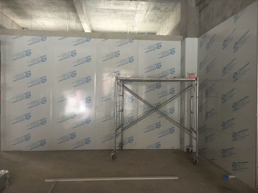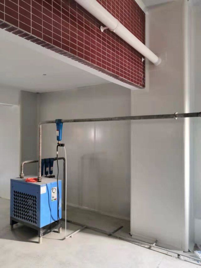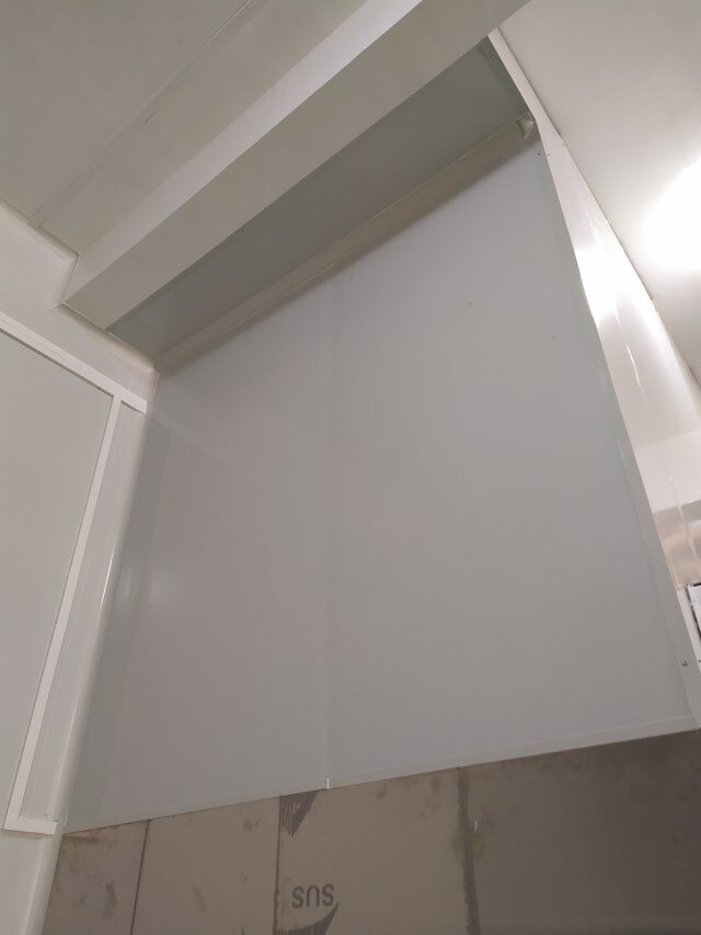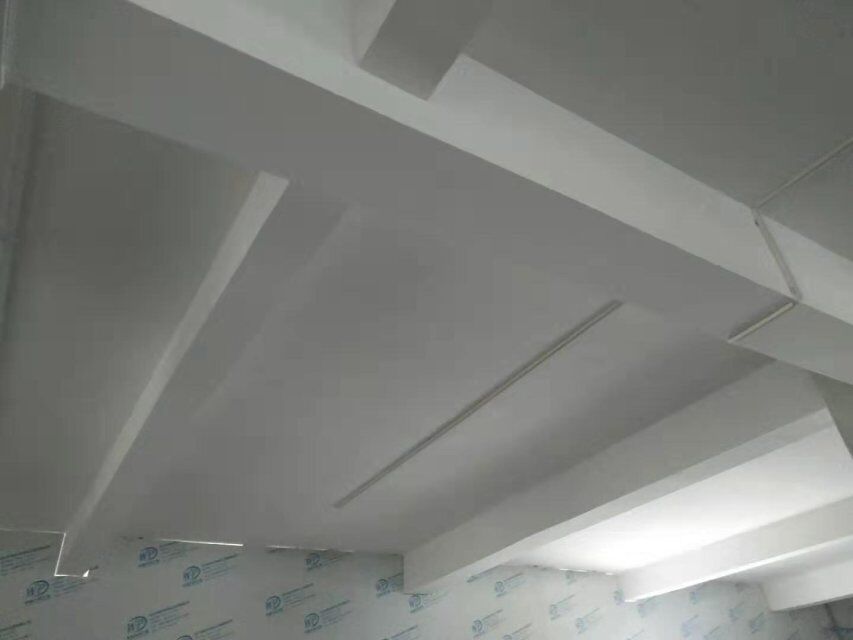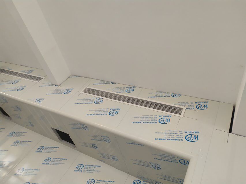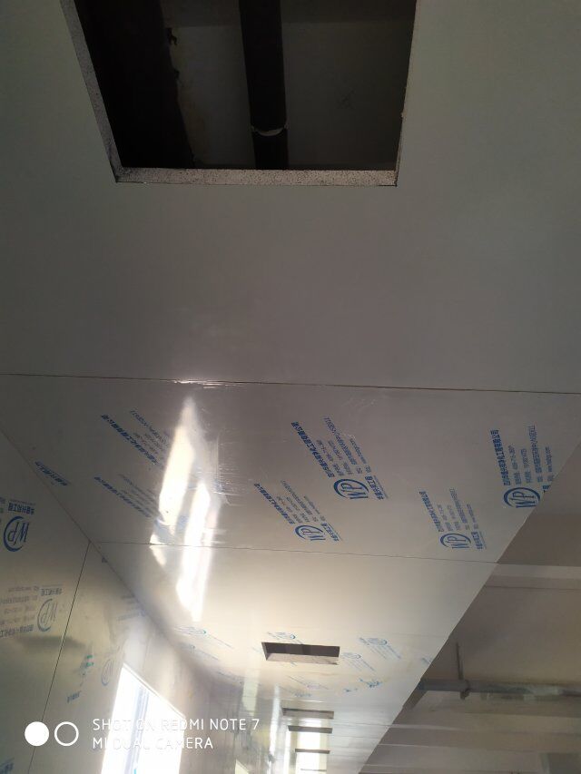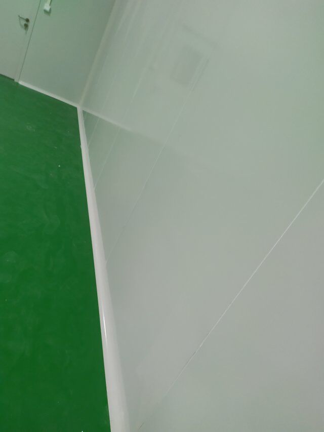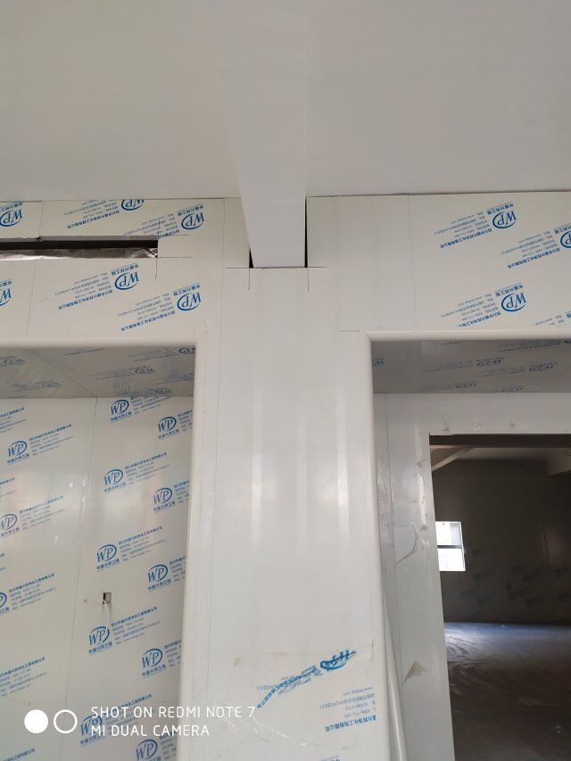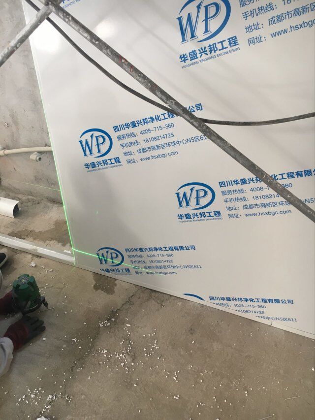 四川美料美味食品科技有限公司廠房裝修現(xiàn)場,風(fēng)淋室調(diào)試安裝完成,板材包邊完成
