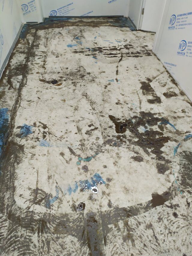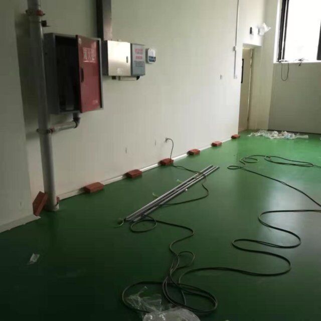四川美料美味食品科技有限公司廠施工現(xiàn)場,地坪施工完成,衛(wèi)生間裝修完成