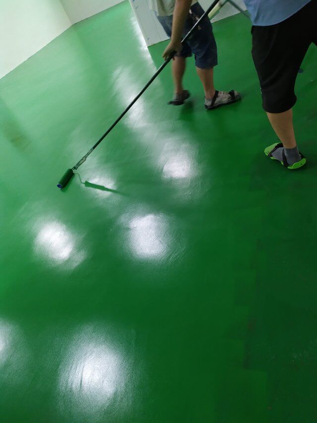 四川美料美味食品科技有限公司廠房裝修現(xiàn)場,環(huán)氧地坪漆施工,打膠條