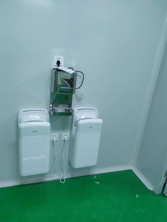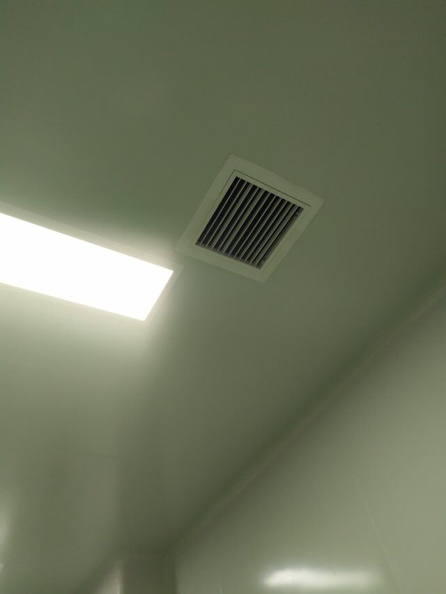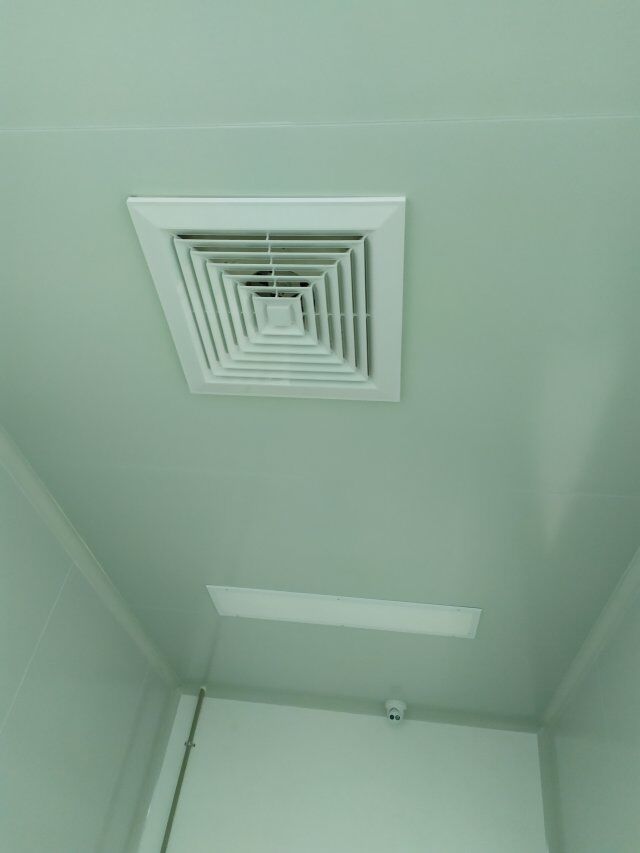 四川美料美味食品科技有限公司廠房裝修現(xiàn)場,排風(fēng)扇安裝,衛(wèi)生間裝修完成