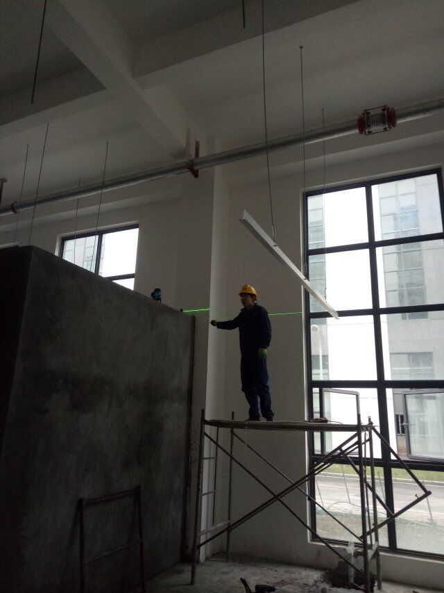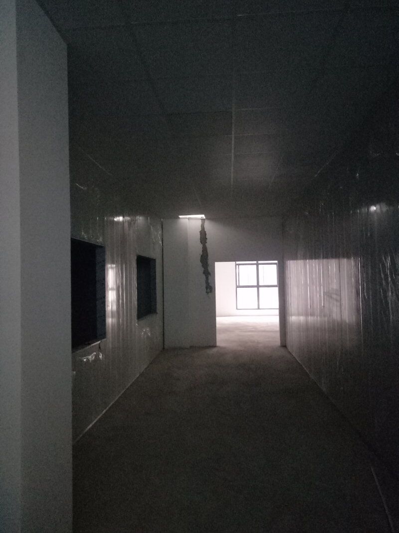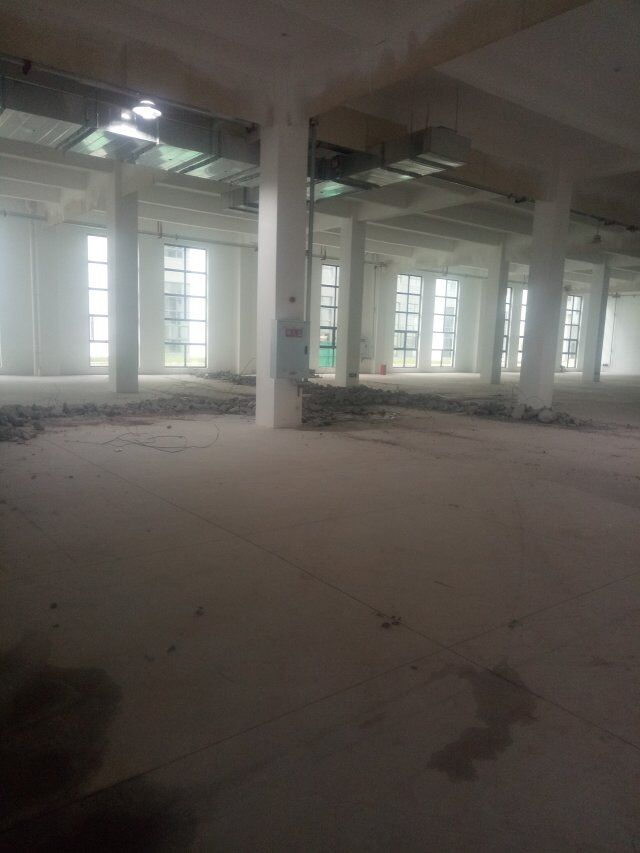 1、加工車間及風機房聚氨酯超耐磨底漆施工完成, 2、辦公區域木地板安裝完成, 3、車間燈安裝完成, 4、門安裝完成
