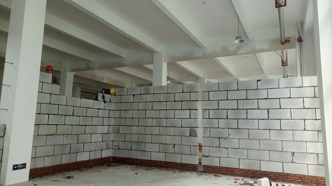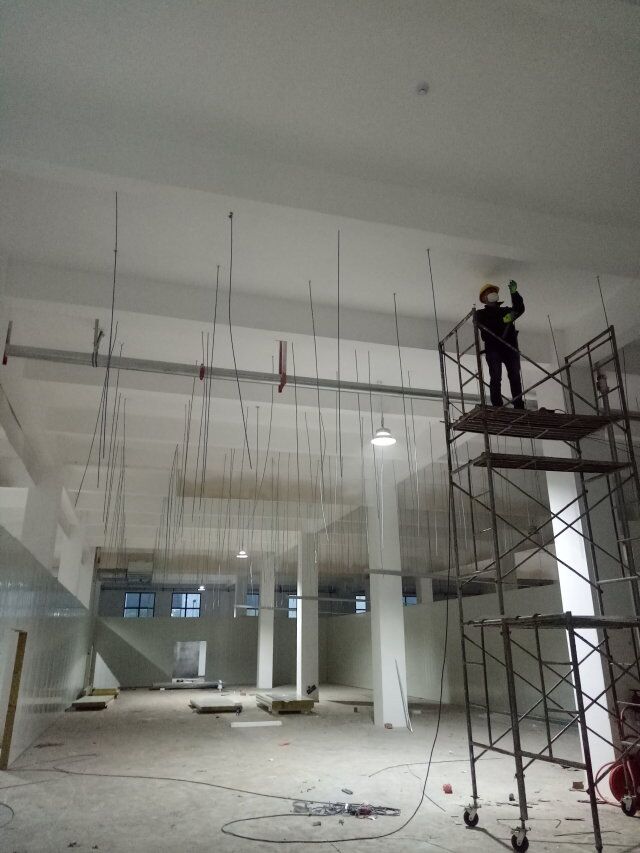 廠房施工現場,室內墻板安裝完成40% 墻面抹灰完成50%
