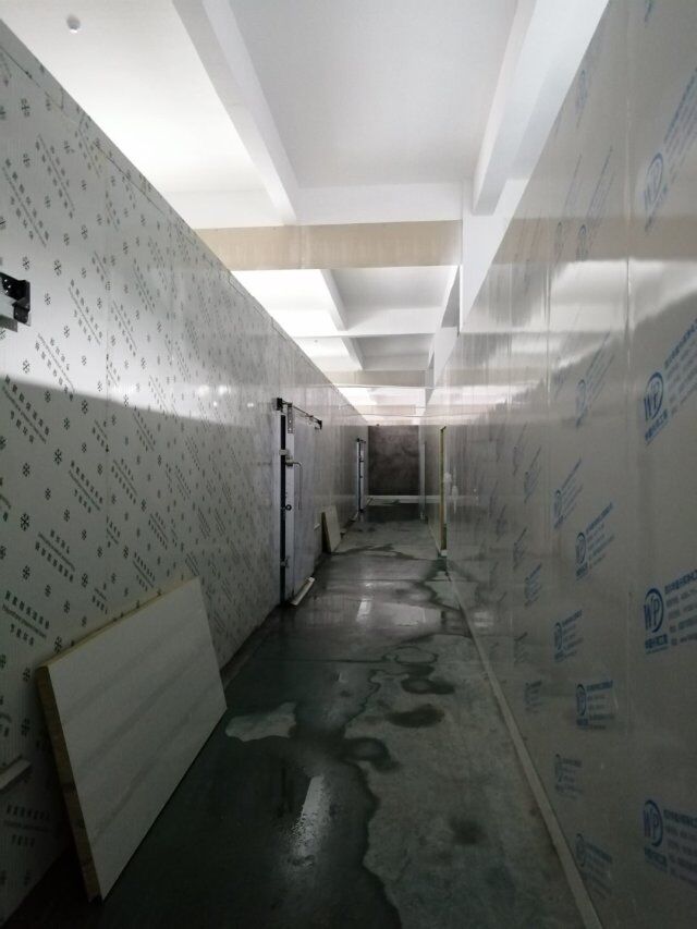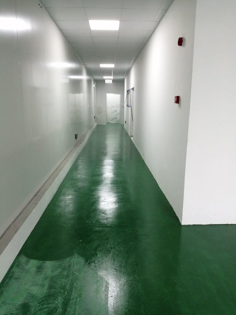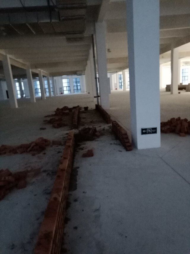 成都王老鴨食品有限公司廠房裝修現場,放線完成,隔斷擋水施工