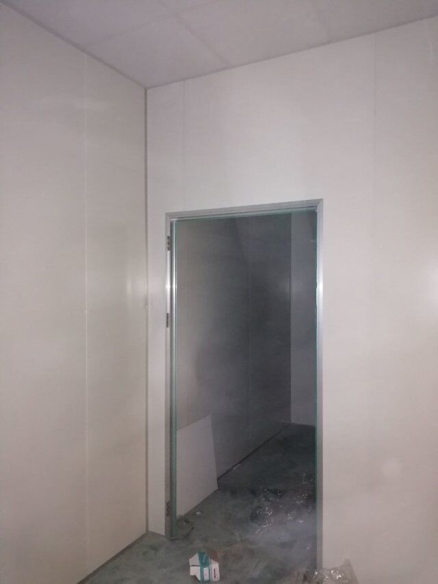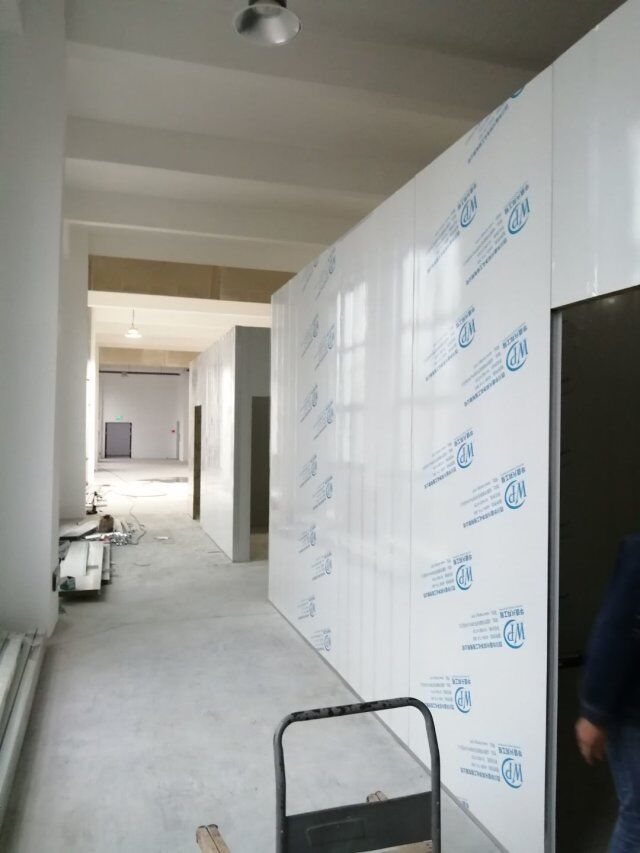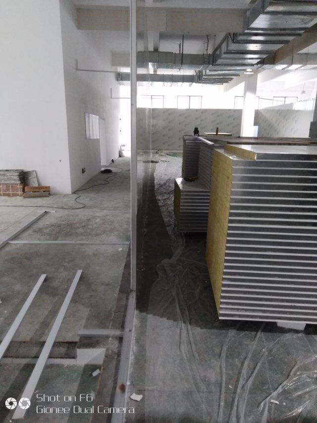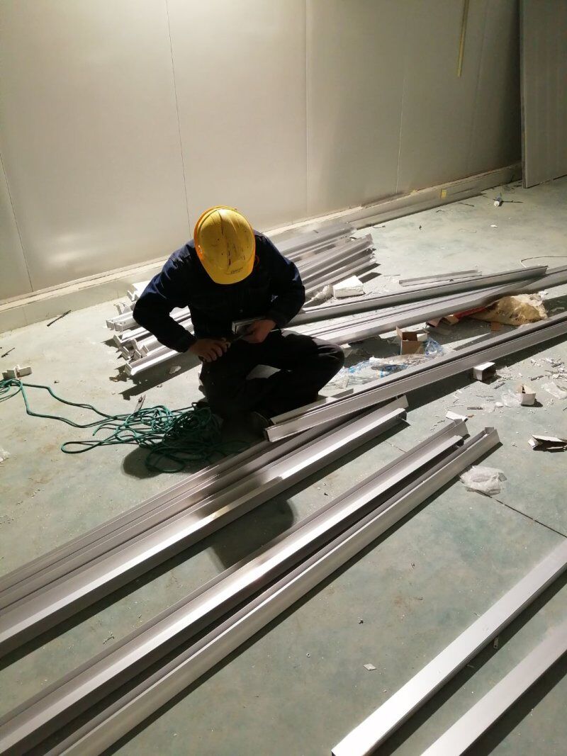 1.墻板完成百分之八十 2.吊頂吊筋安裝完成,3.門料下料切角施工
