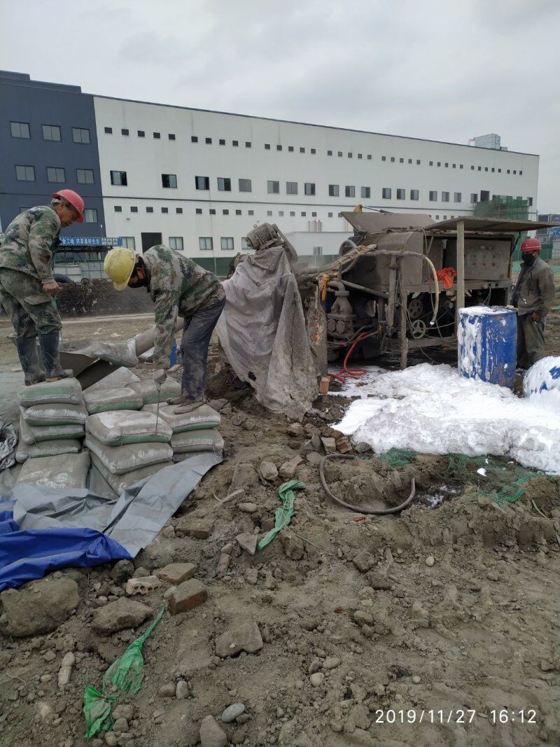 車間擋水墻砌磚施工,發泡混泥土開始施工