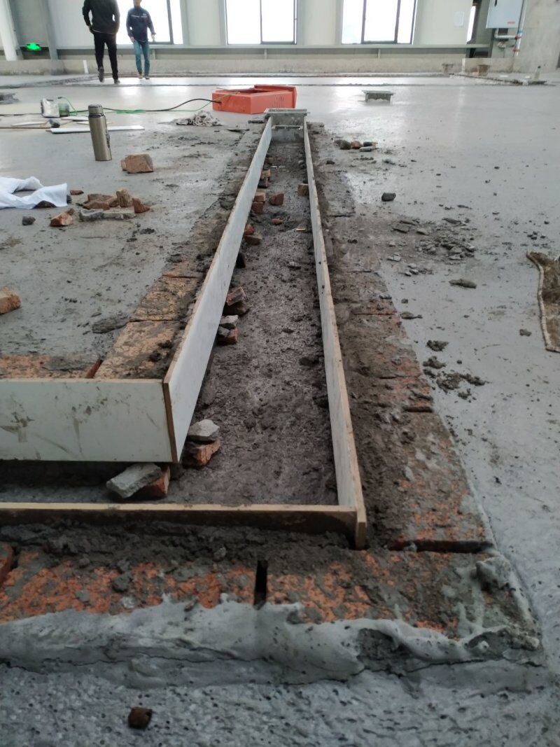 1.一樓排水溝清理完成; 2.辦公室砌磚抹灰完成,防水施工完成; 3.一樓夾層衛生間建渣清理; 4.電梯井前伸縮帶護邊角鋼預制焊接安裝; 5.主通道開始閉水實驗; 6.電梯井前建渣平整完成。 7.一樓不銹鋼排水溝焊接。