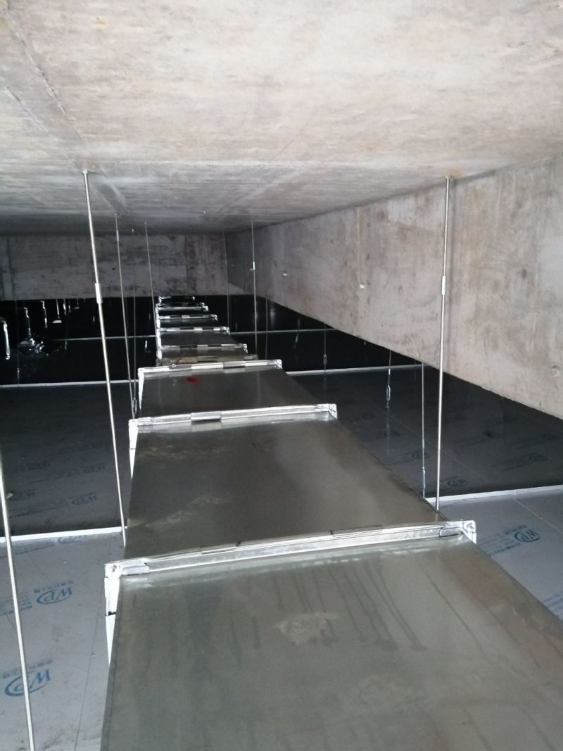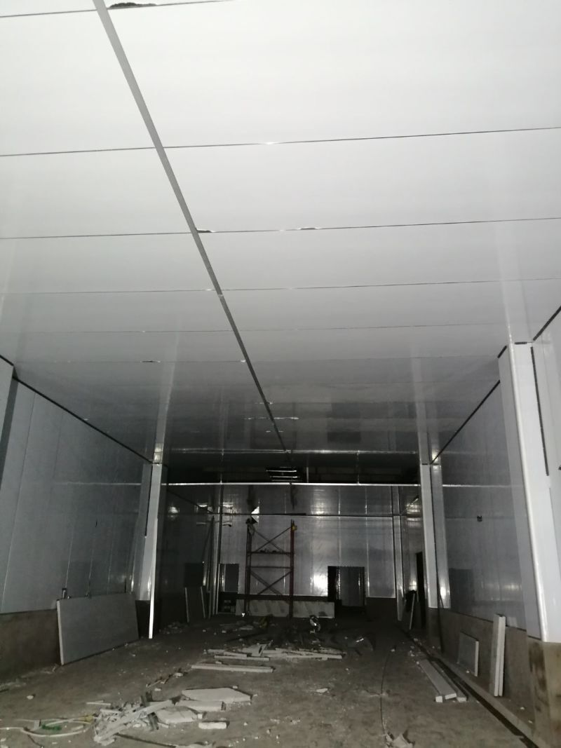 1.風管組裝完成,保溫完成百分之五十 2.彩鋼板開始全面吊頂