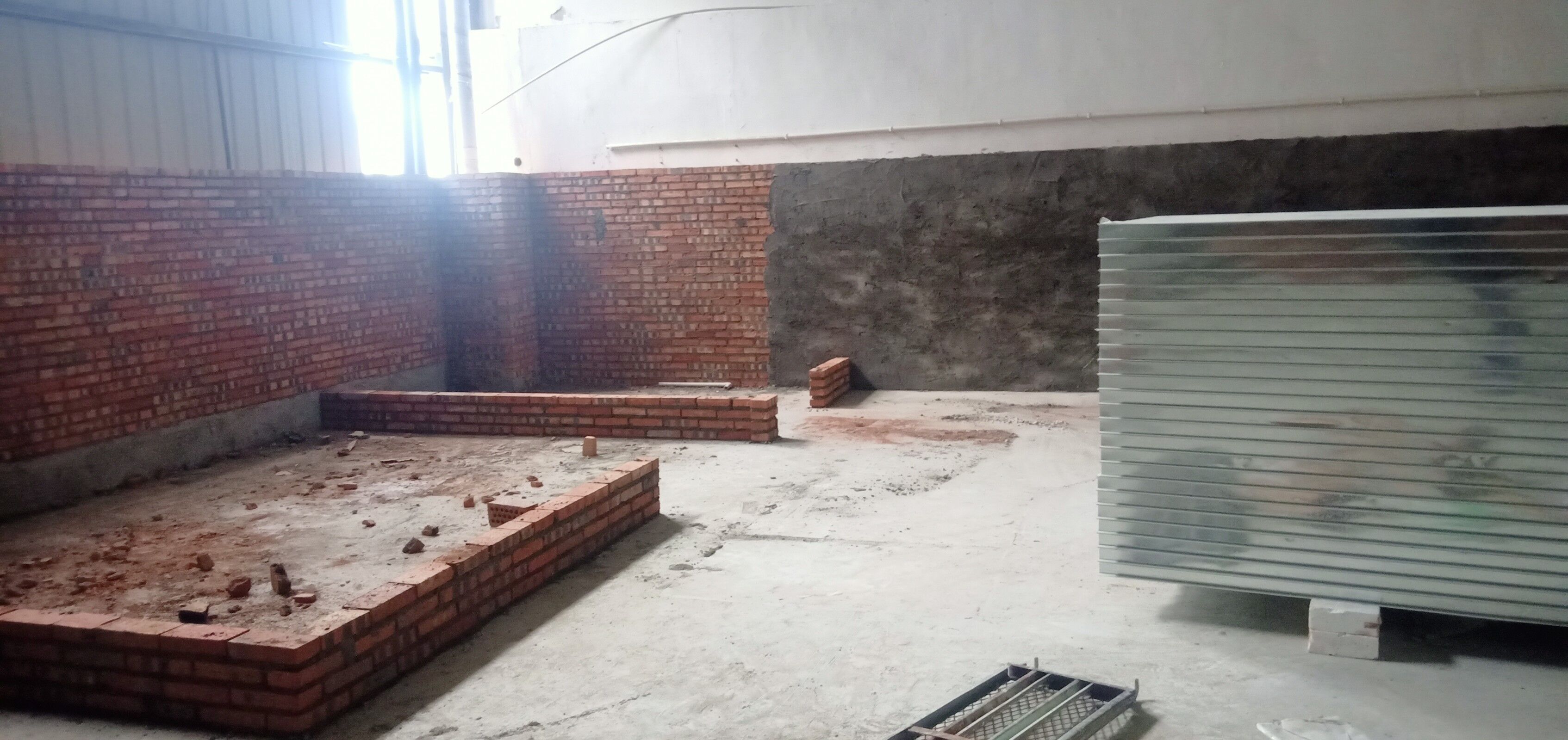 凈化車間墻面施工完成,吊頂燈具施工完成