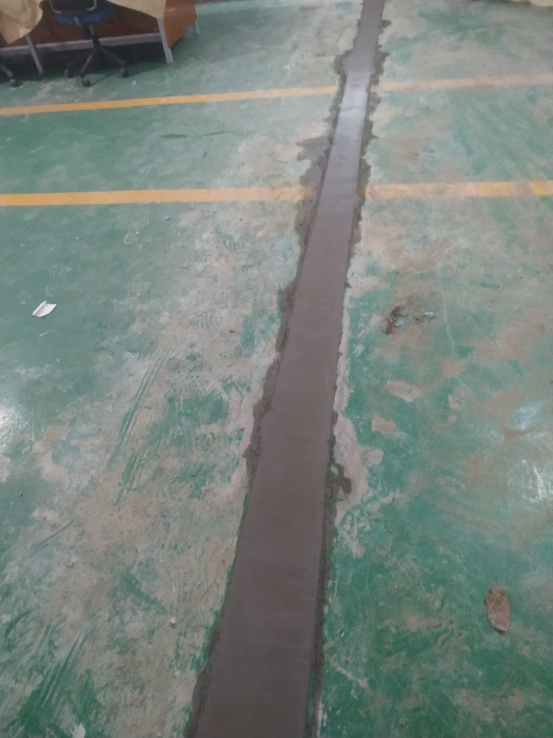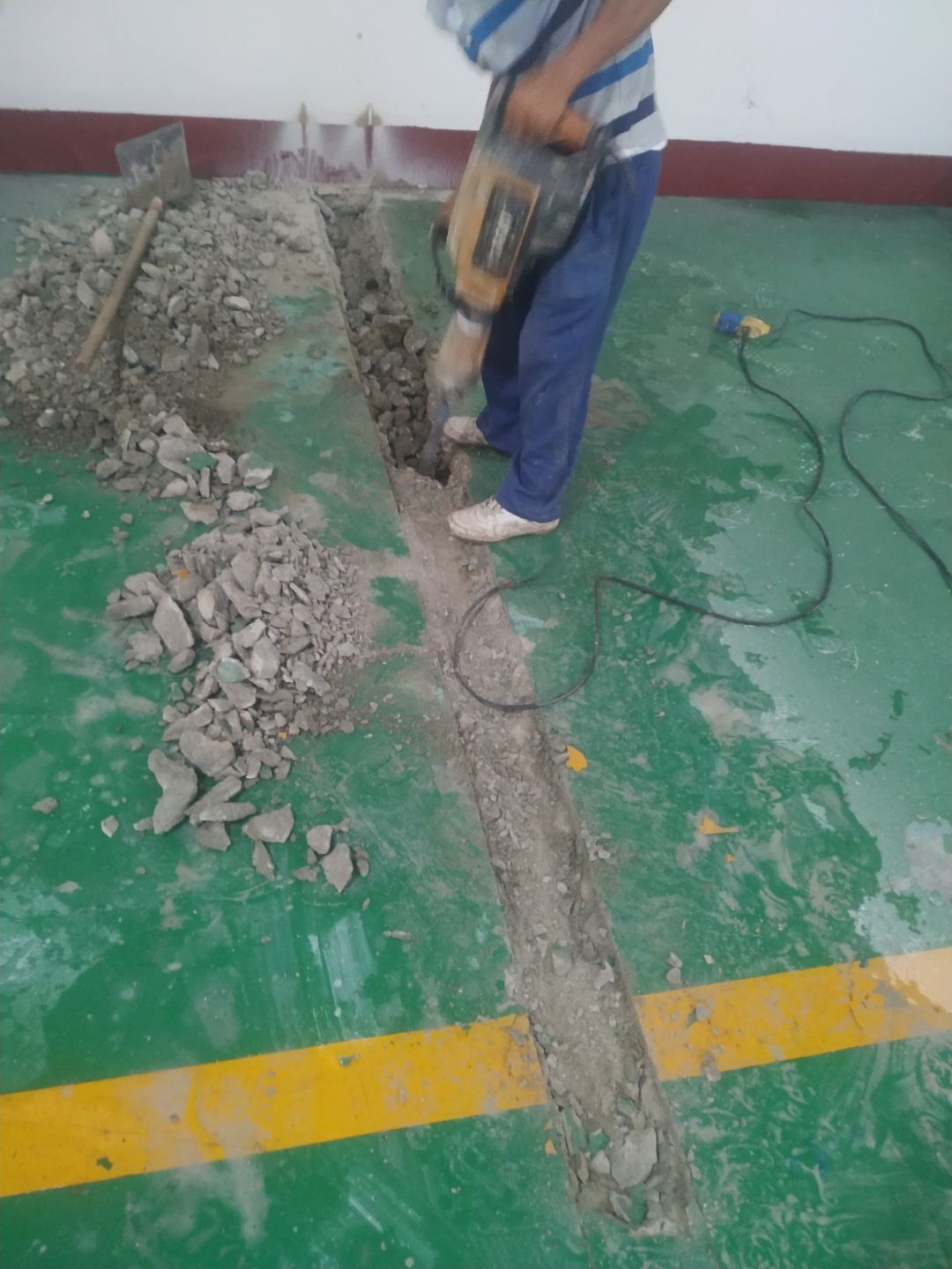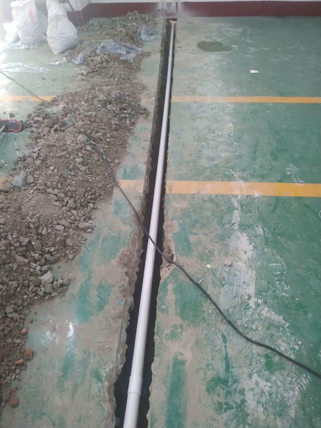 成都波輻科技有限公司廠房施工現場,排水管開槽完成,給水管和排水暗埋部分管敷設完成。
