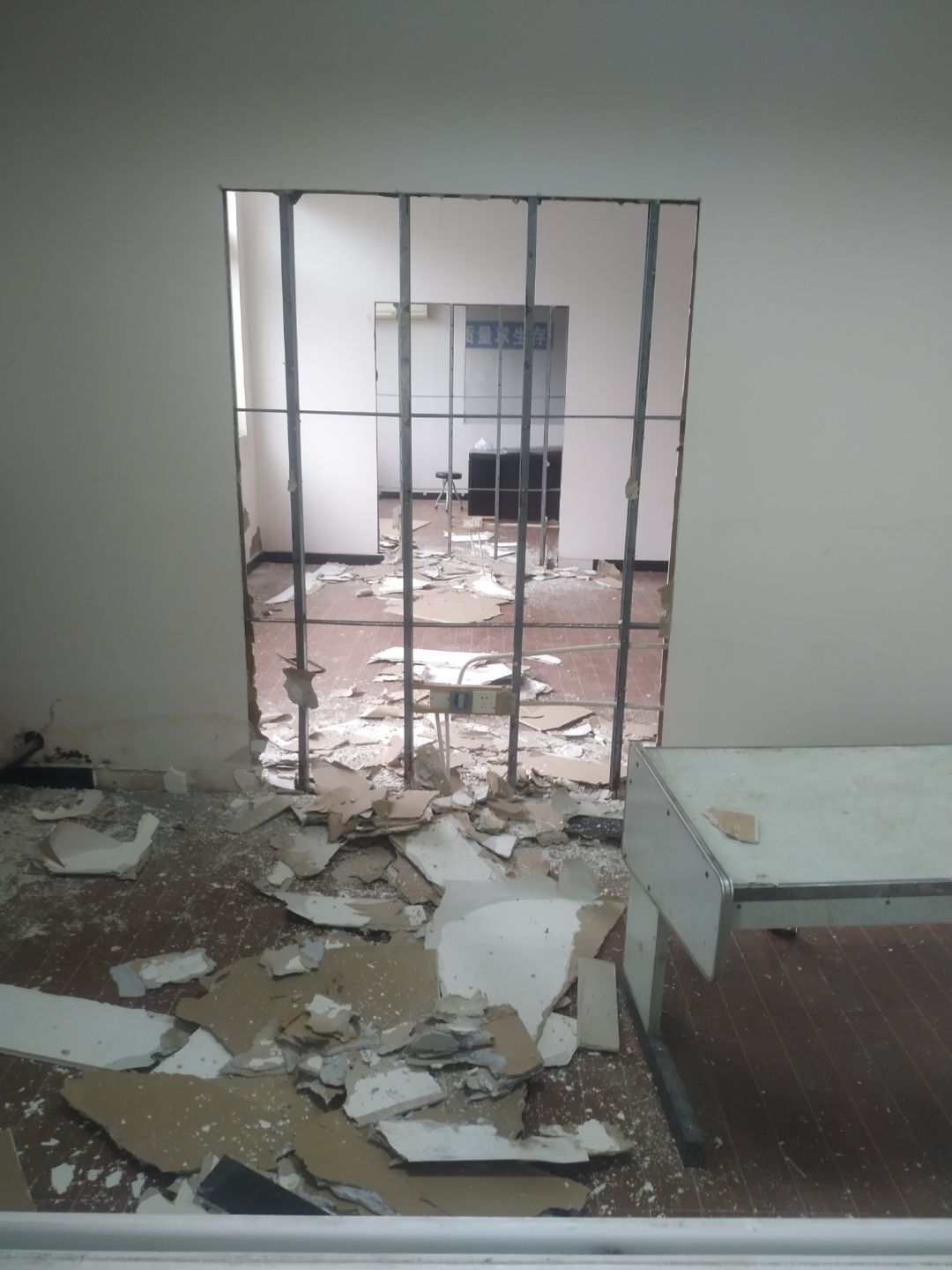 1.增項墻體拆除完成,窗簾盒安裝完成。2.彩鋼立板安裝,門框料預制完成,門框安裝完成50%,撕膜完成,打膠完成25%,塑料底座安裝完成40%,圓弧安裝完成20%。