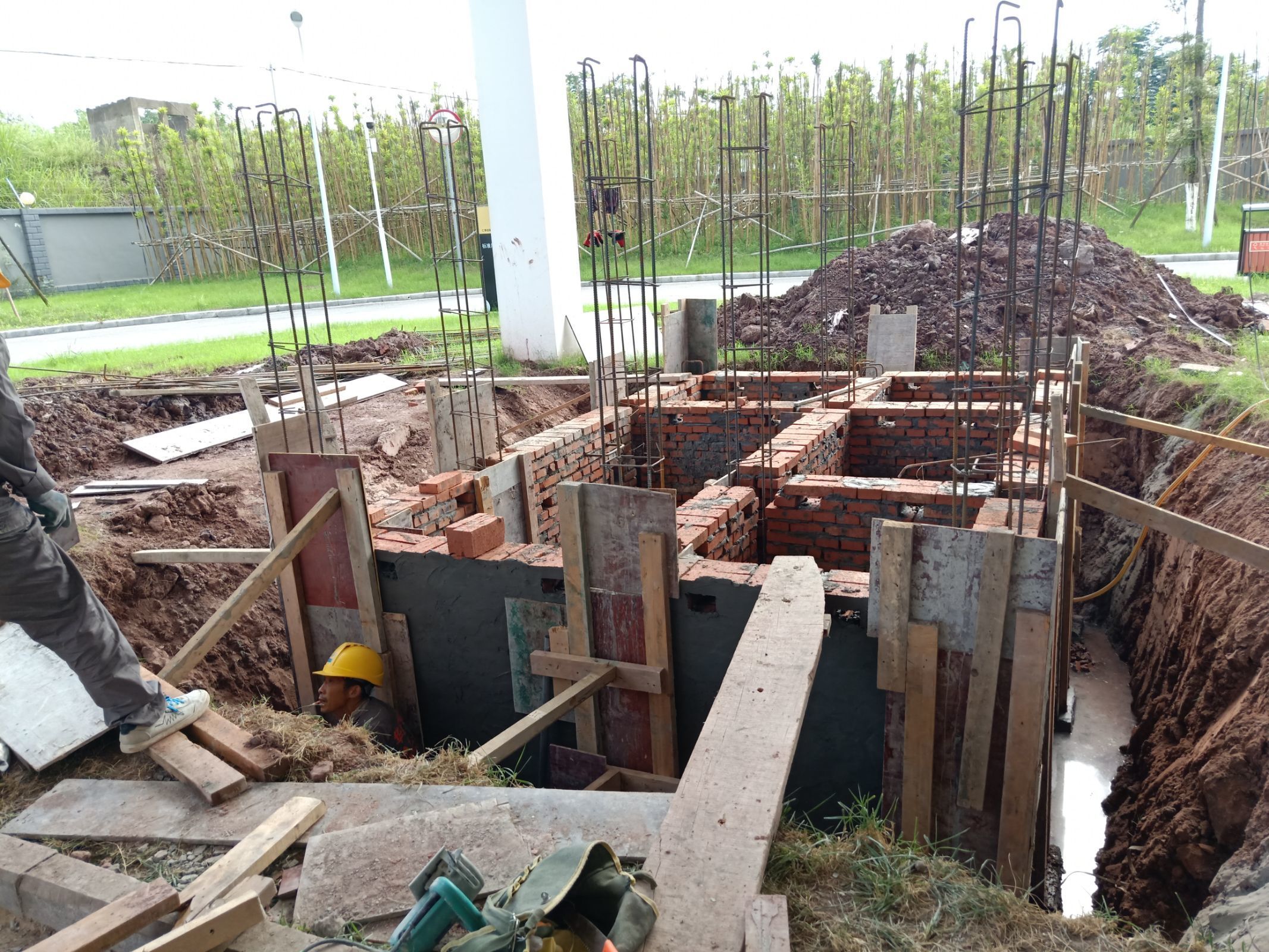 1.污水池回填施工 2.污水池二層平臺柱子關模施工 3.水電安裝 4.圓弧膠條施工 5.墻磚施工