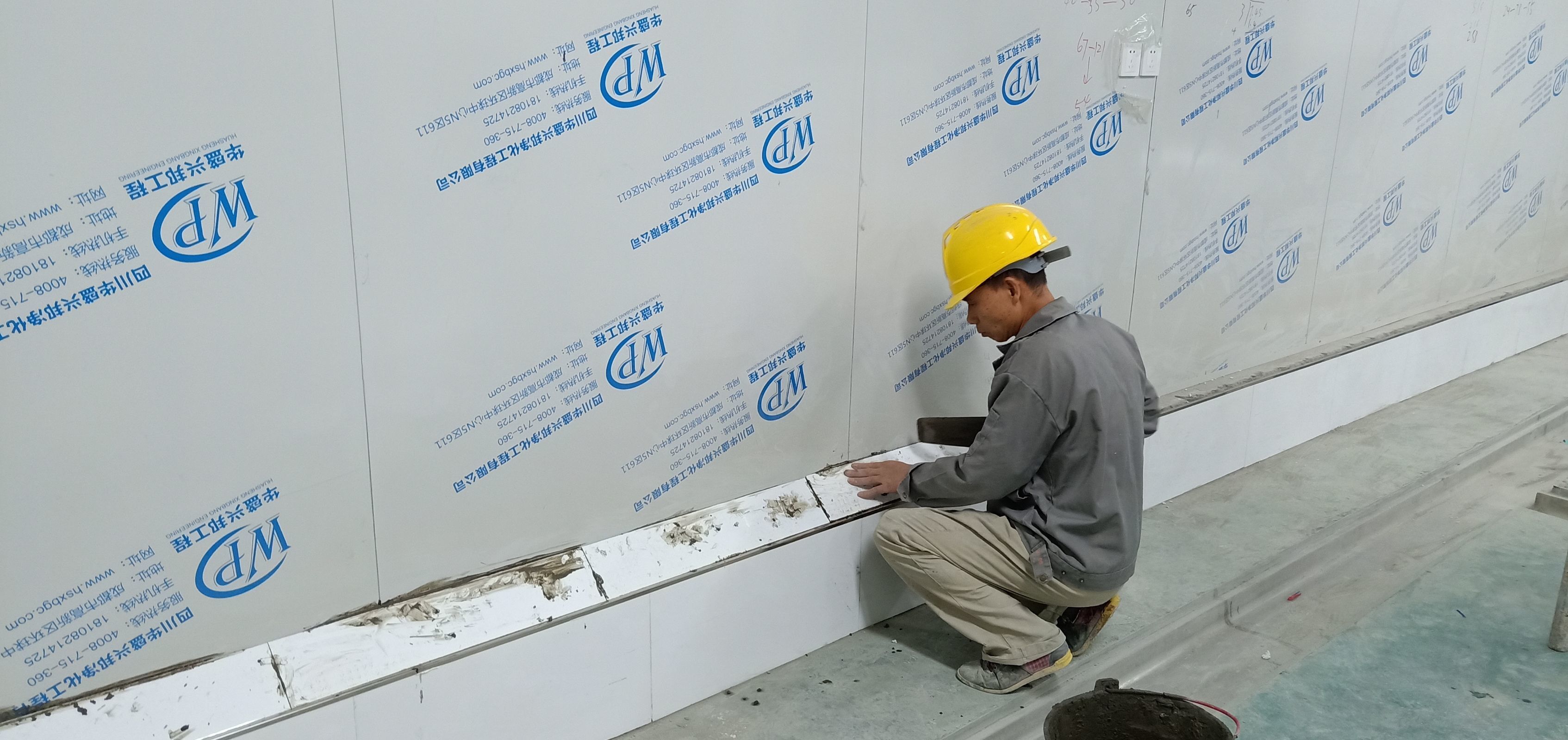 1.彩鋼圓弧膠條完成百分之十五 2.墻磚鋪貼完成百分之七十五 3.污水池砌磚完成百分之四十
