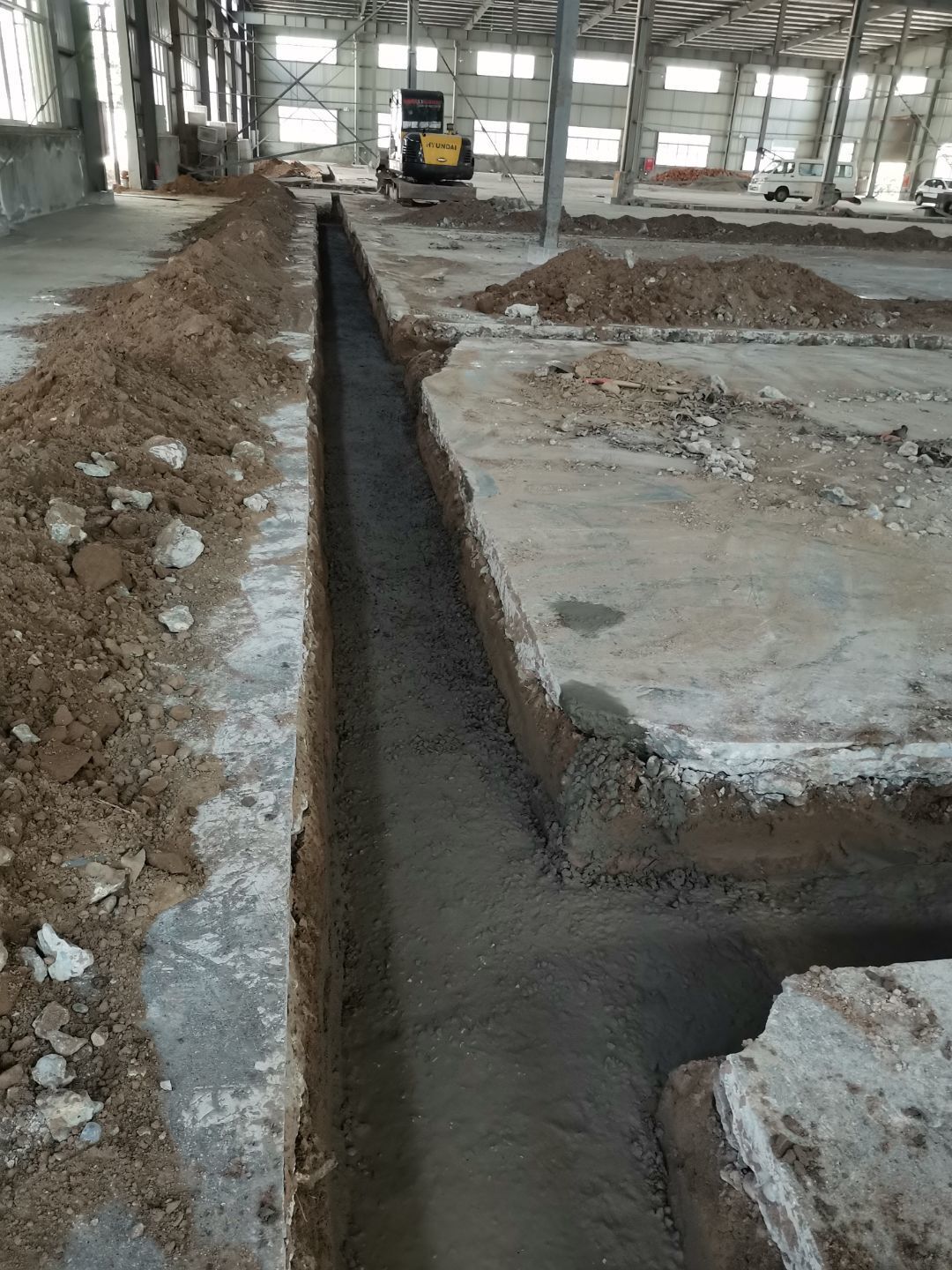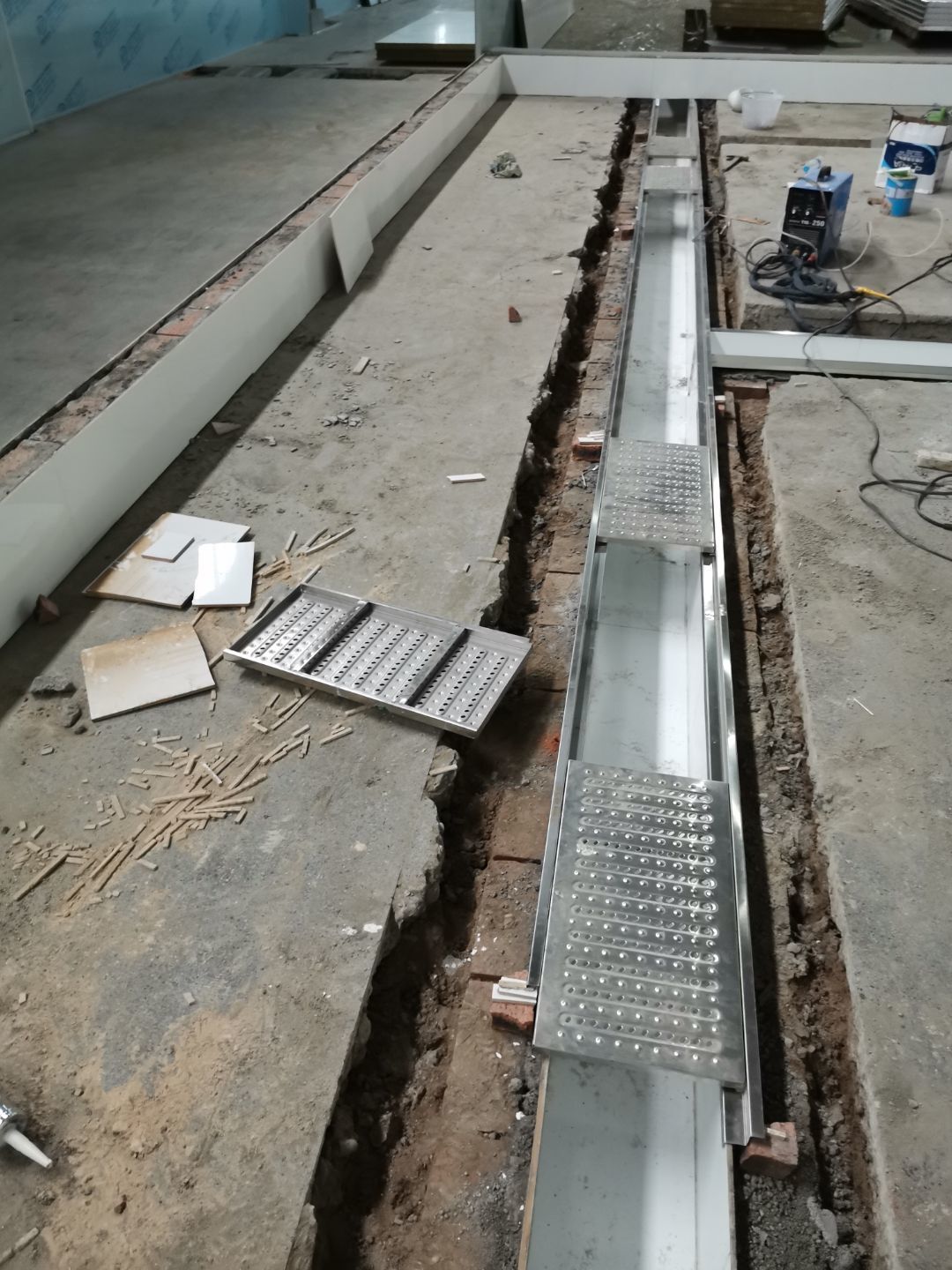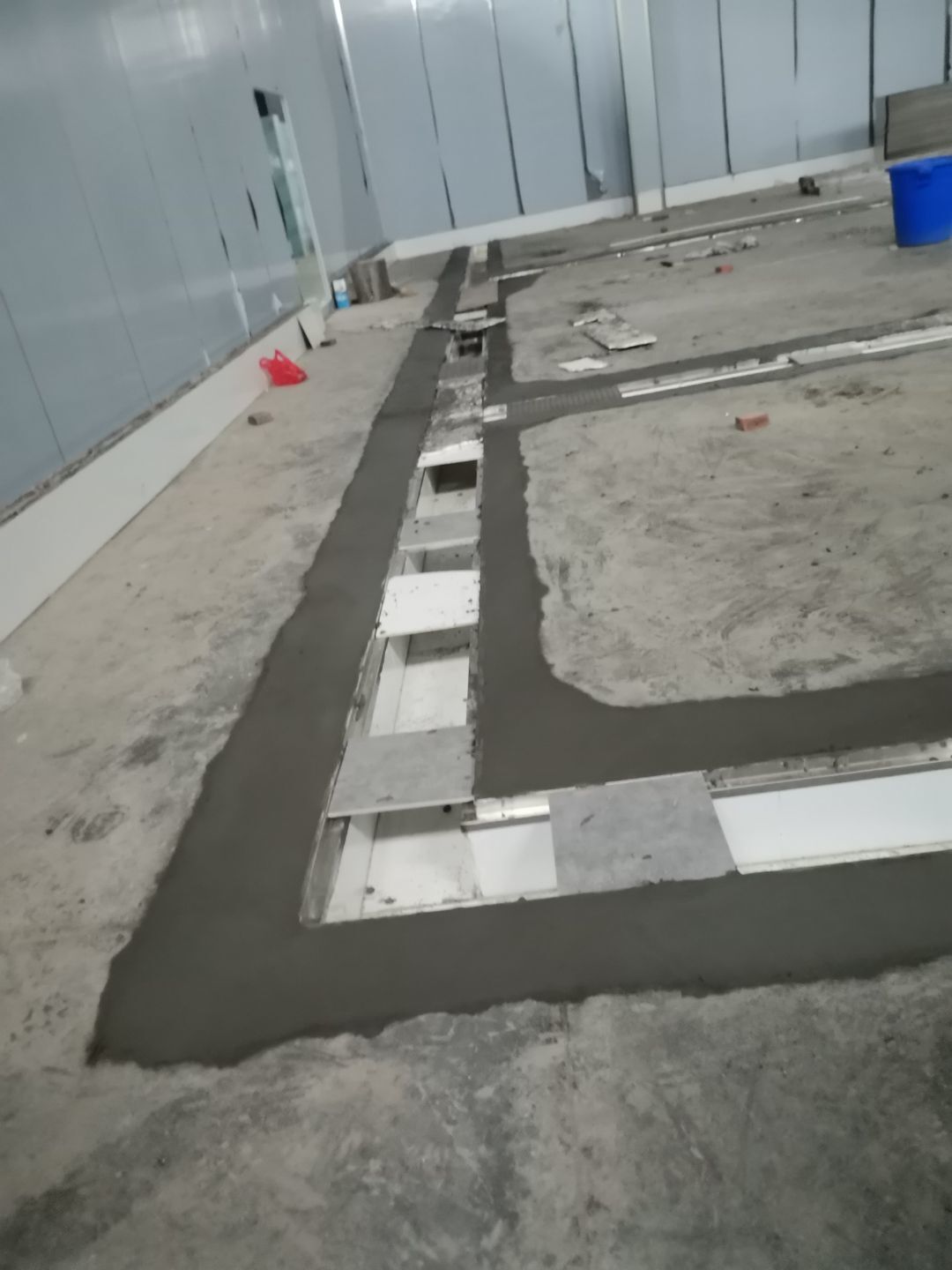 1、 吊筋安裝完成70%,頂板安裝完成70%; 2、彩鋼墻板安裝完成95%,門洞開設(shè)完成90%,自制門框下料完成100%; 3、地坪打磨第二遍完成100%; 4、水電燈具安裝完成70%,插座定位開孔完成70; 5、彩鋼圓弧安裝完成50%; 6、原水溝混凝土面層修補完成75%; 7、紗窗安裝完成100%; 8、場地清理。