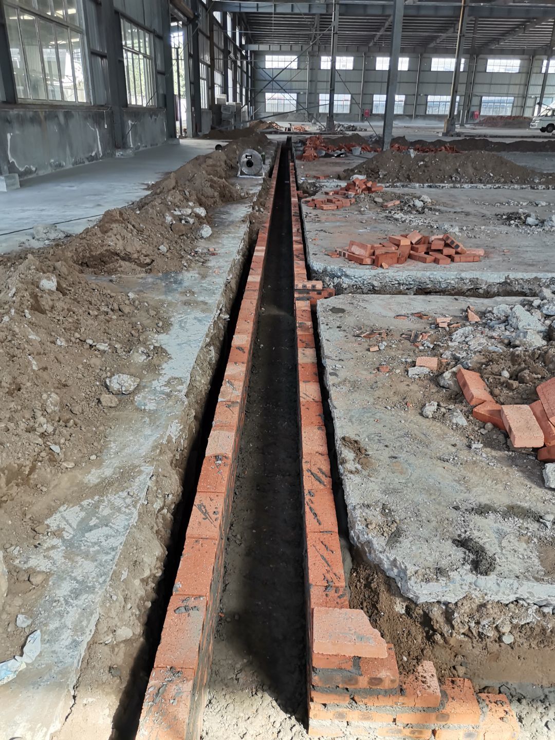 四川怡味農(nóng)業(yè)科技發(fā)展有限公司中央廚房裝修現(xiàn)場:1、排水溝墊層養(yǎng)護(hù); 2、排水溝砌筑完成40%; 3、場地清理。