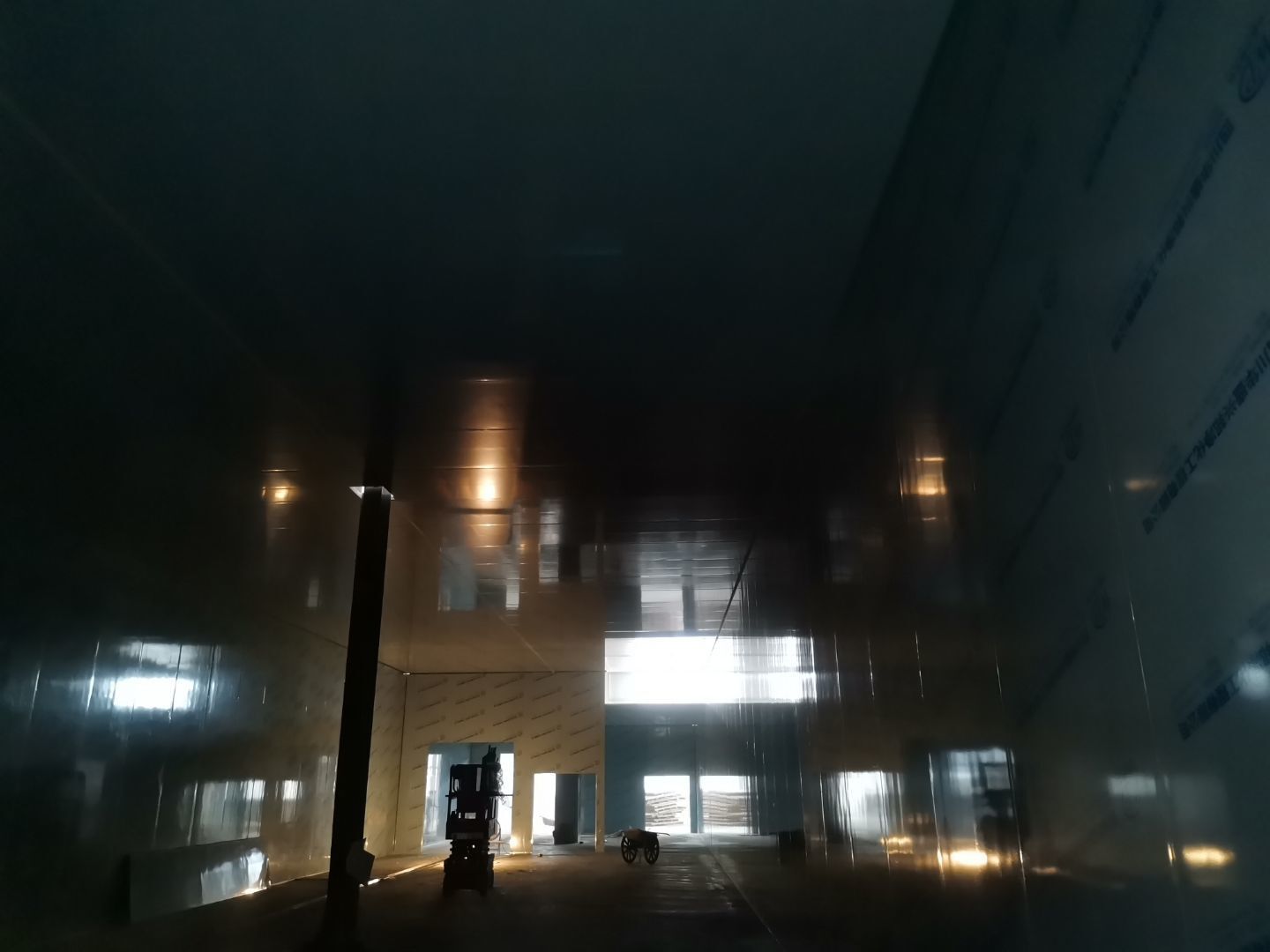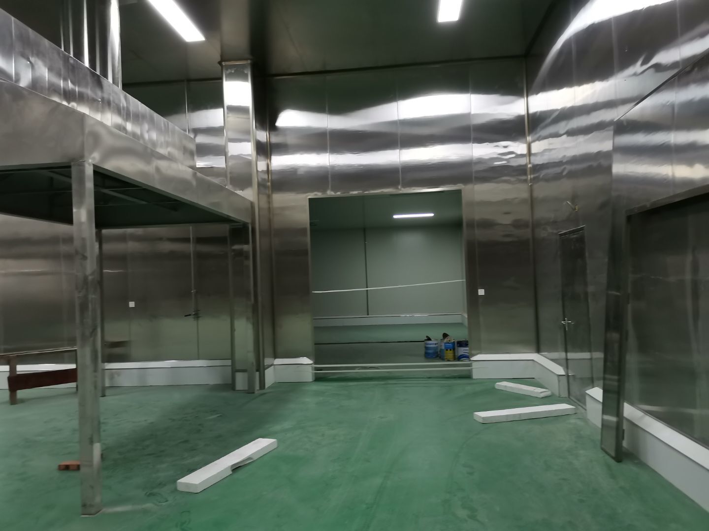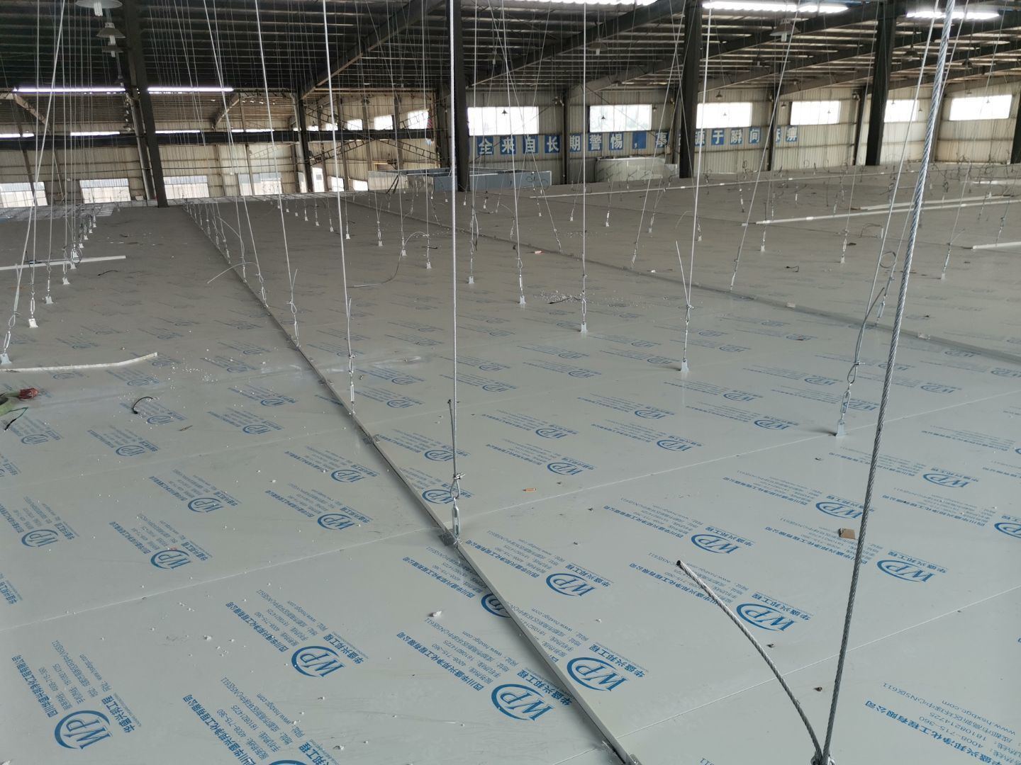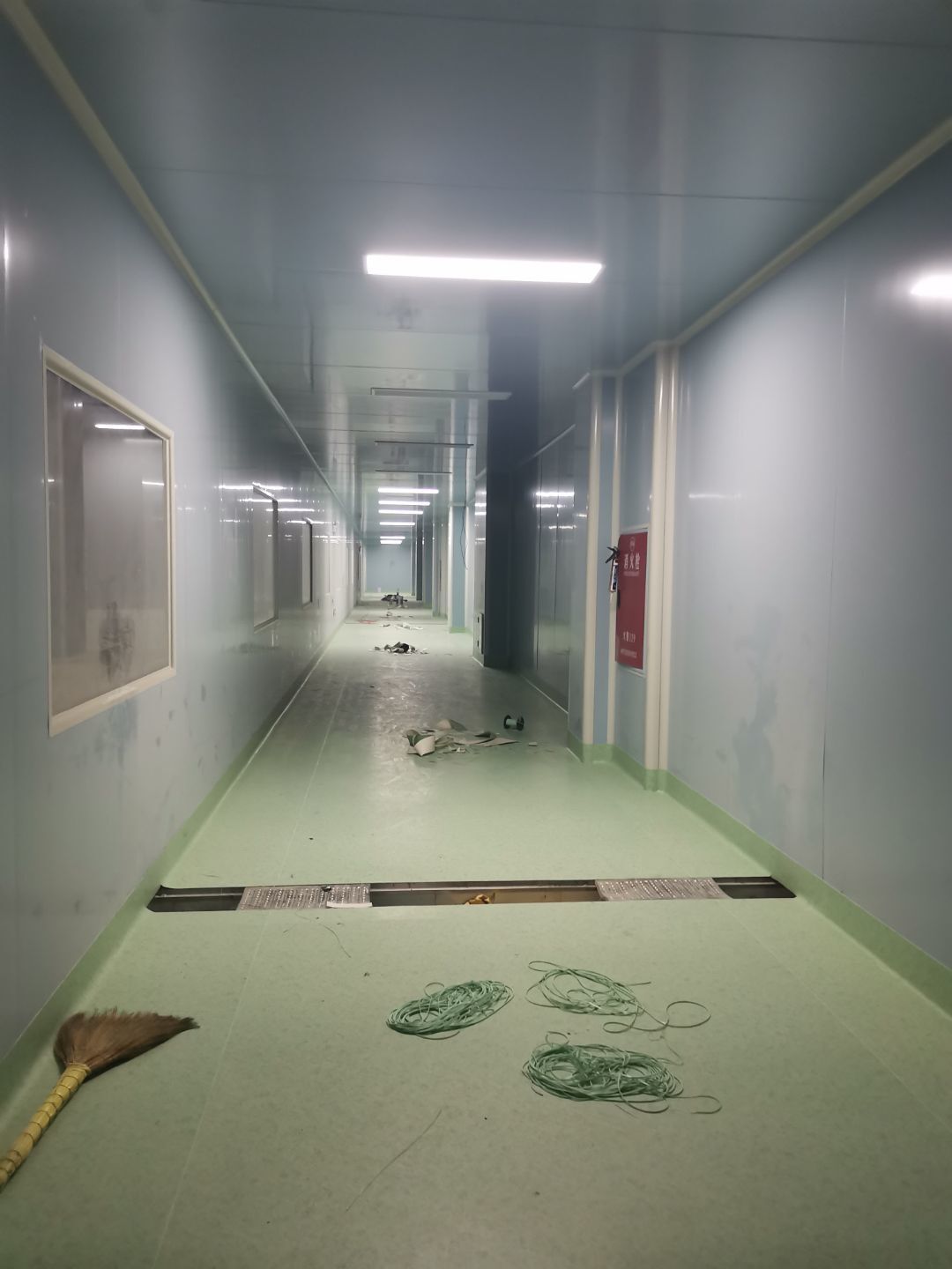 1、 吊筋安裝完成70%,頂板安裝完成70%; 2、彩鋼墻板安裝完成95%,門洞開設(shè)完成90%,自制門框下料完成100%; 3、地坪打磨第三遍完成100%; 4、水電燈具安裝完成90%,插座定位開孔完成100; 5、彩鋼圓弧安裝完成70%; 6、原水溝混凝土面層修補完成100%; 7、墻板撕膜打膠完成45%; 8、冷風(fēng)機主機安裝完成100%,風(fēng)管安裝完成15%; 9、場地清理。