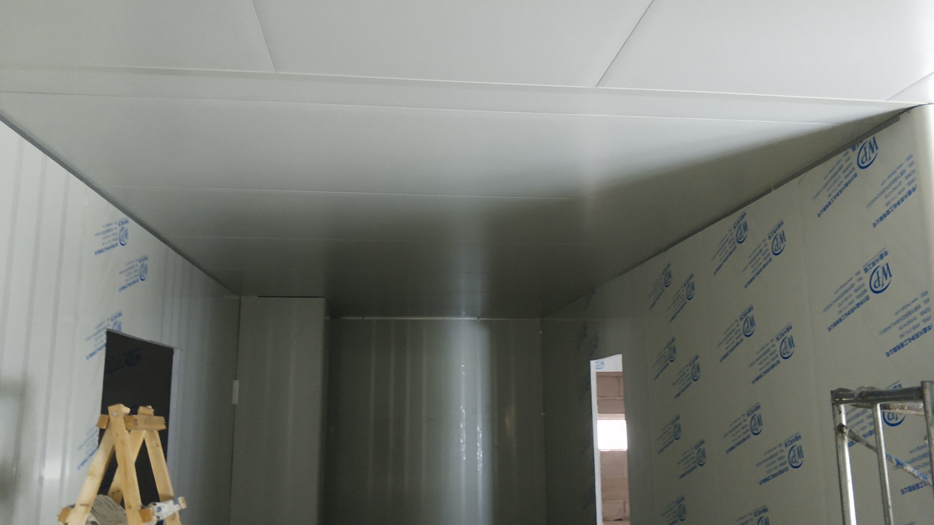 彩鋼板、凈化板施工現(xiàn)場(chǎng)。