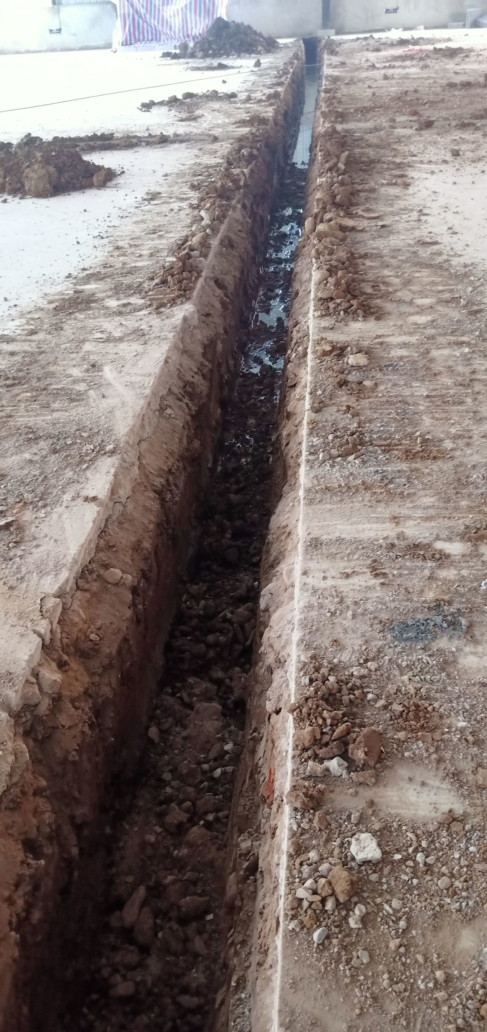 室內(nèi)排水溝破碎及清挖完成,待泥水進(jìn)場(chǎng)