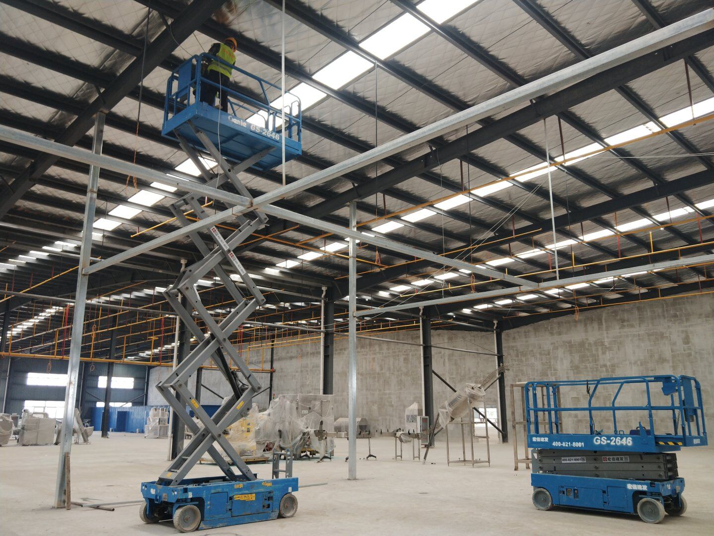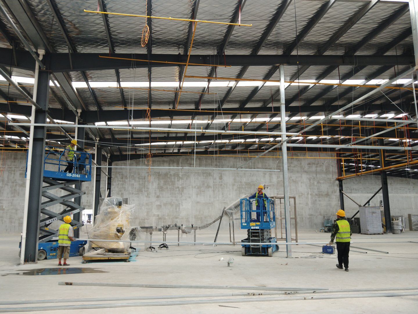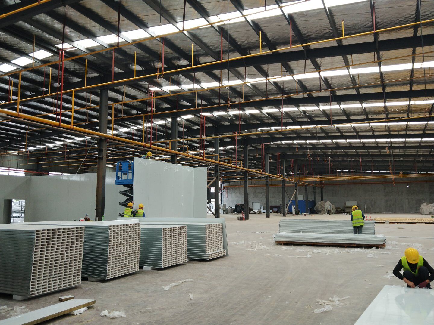 1,彩鋼隔墻完成40%; 2,彩鋼板頂板完成20%。