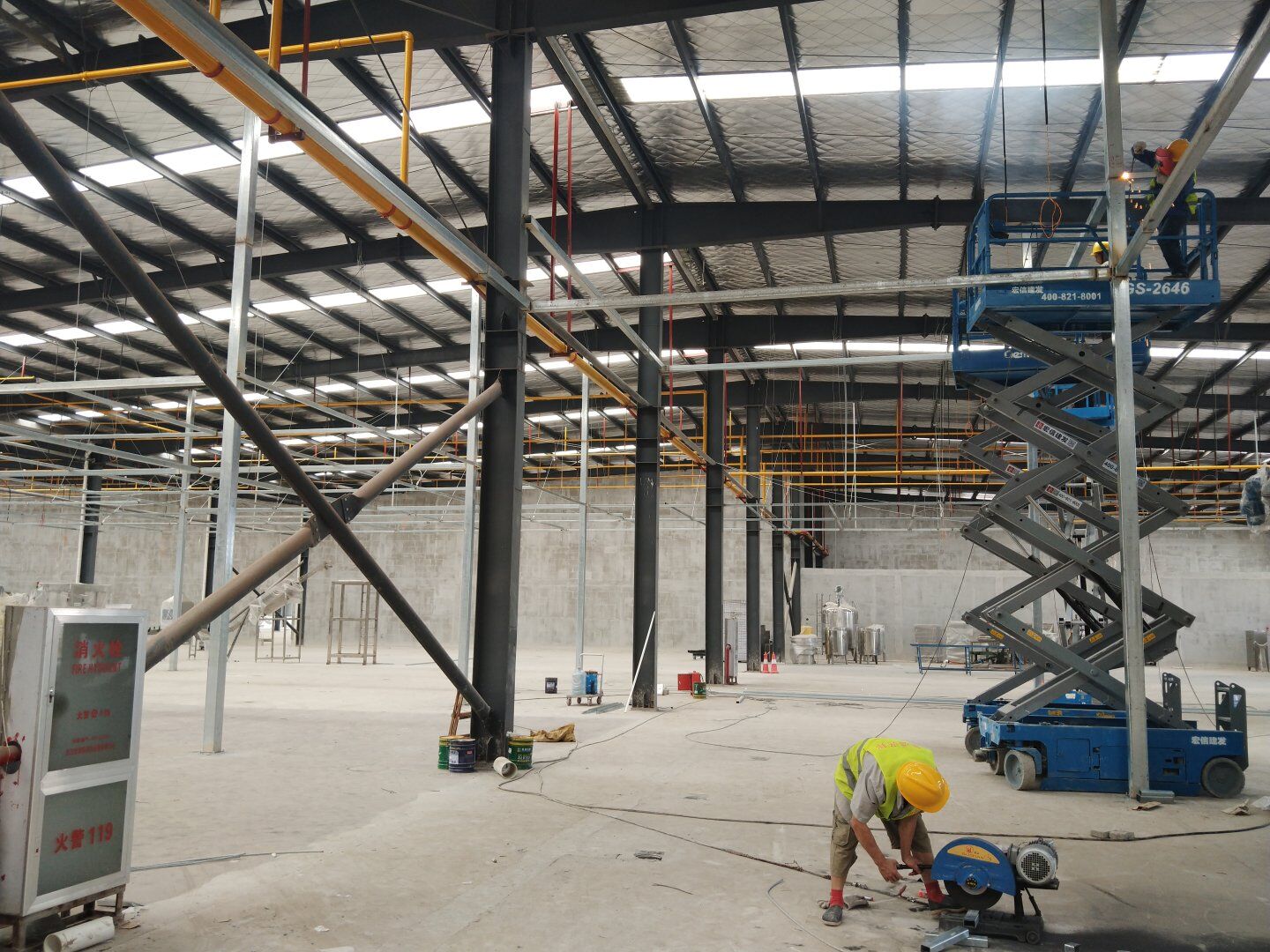 液體車間施工:1,彩鋼墻板完成60%; 2,頂板完成40%。