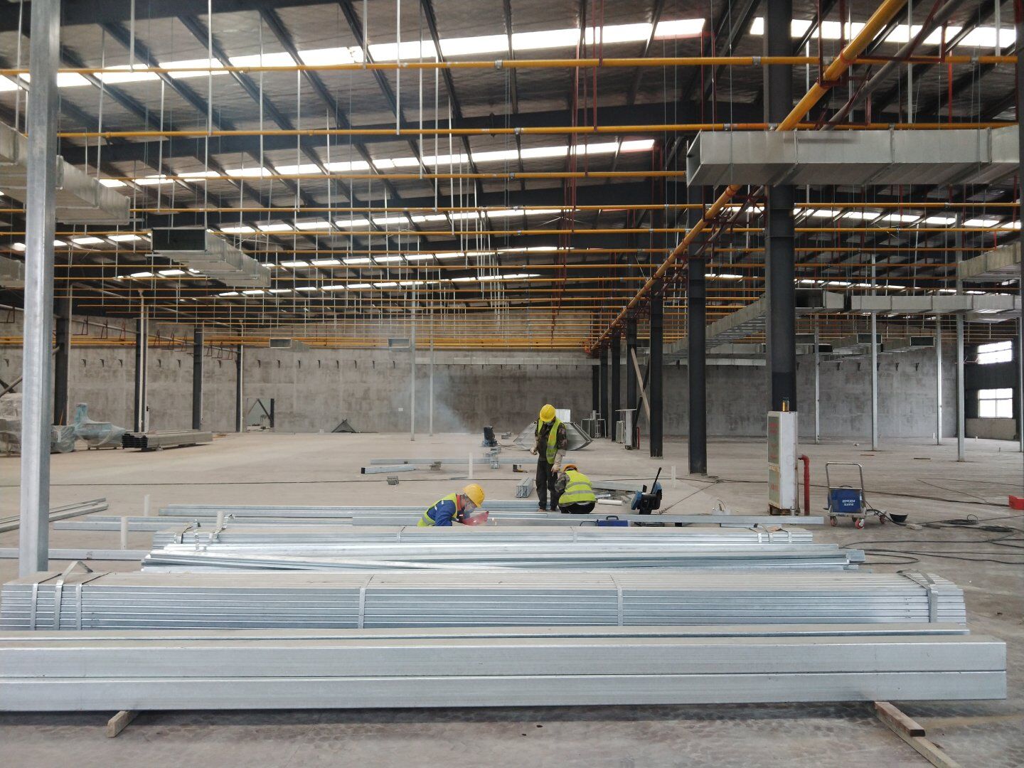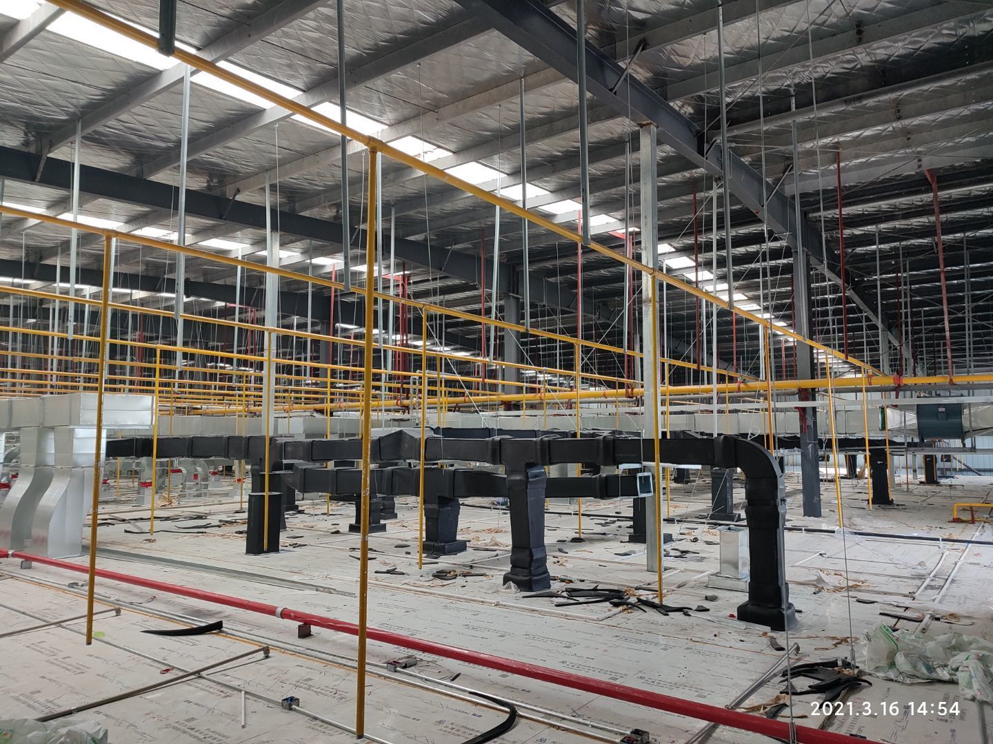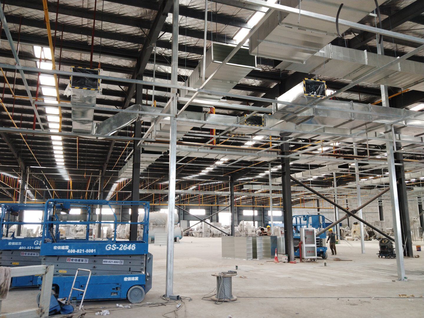 1,除設備預留通道外墻板完成, 2,頂板完成80%, 3,風管支管扣管完成30%