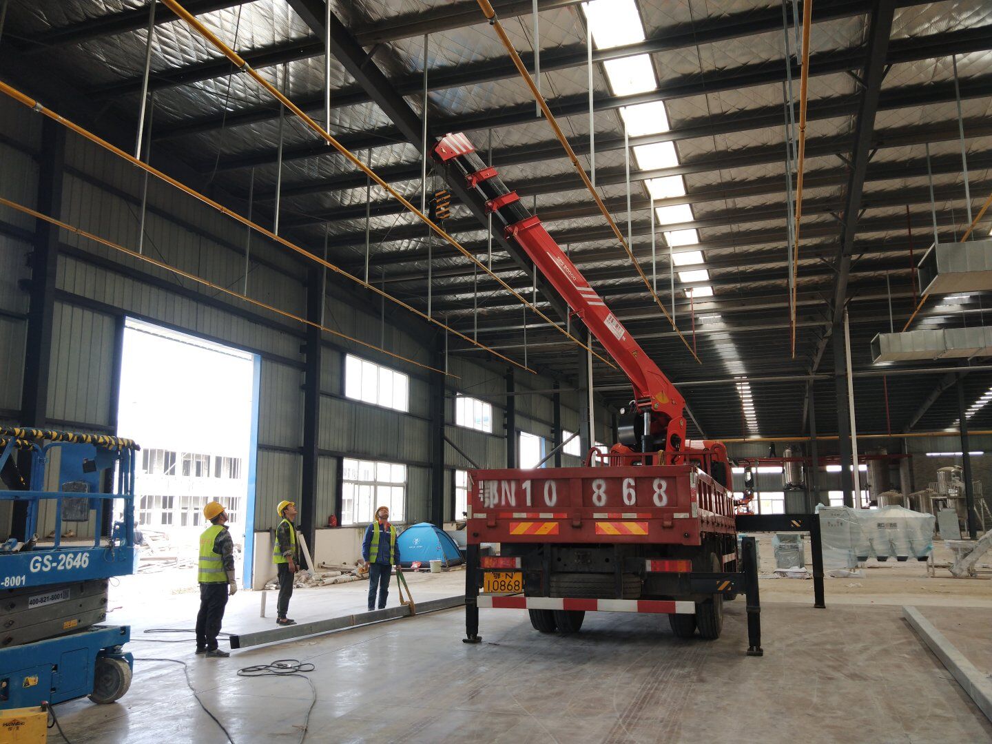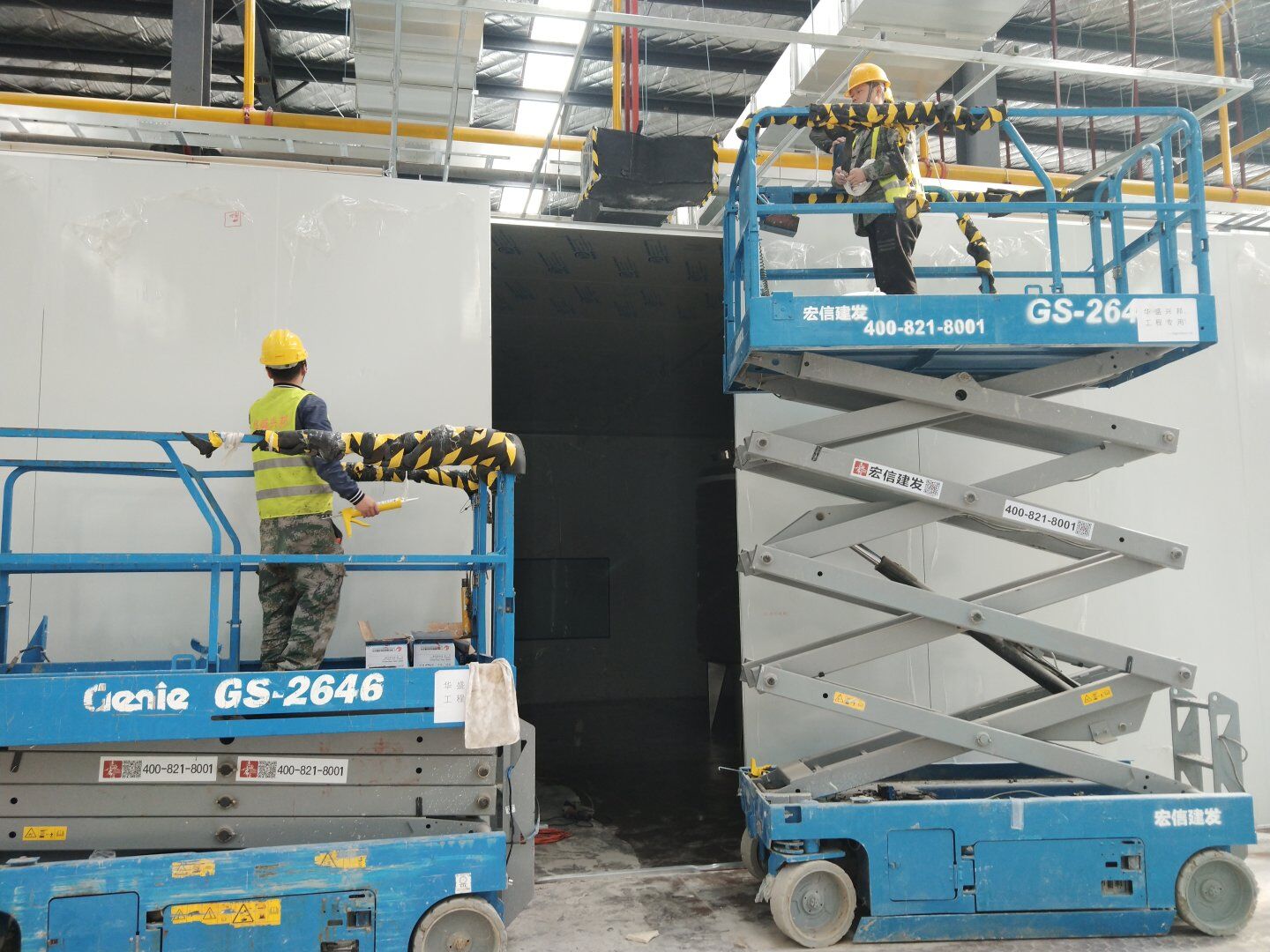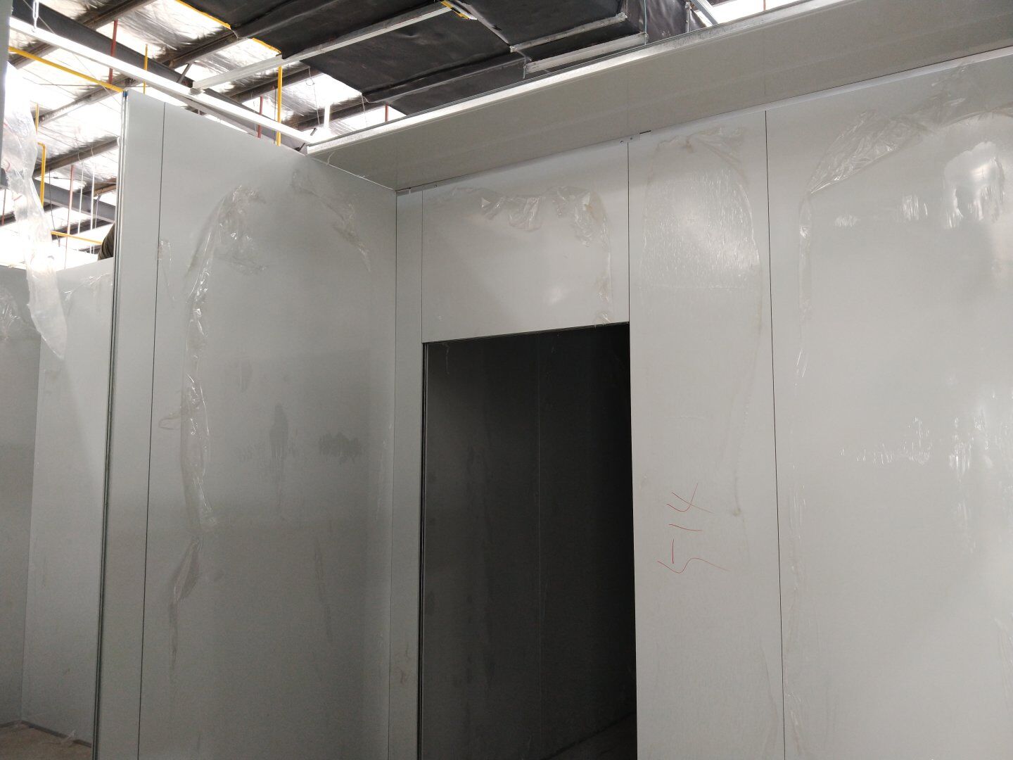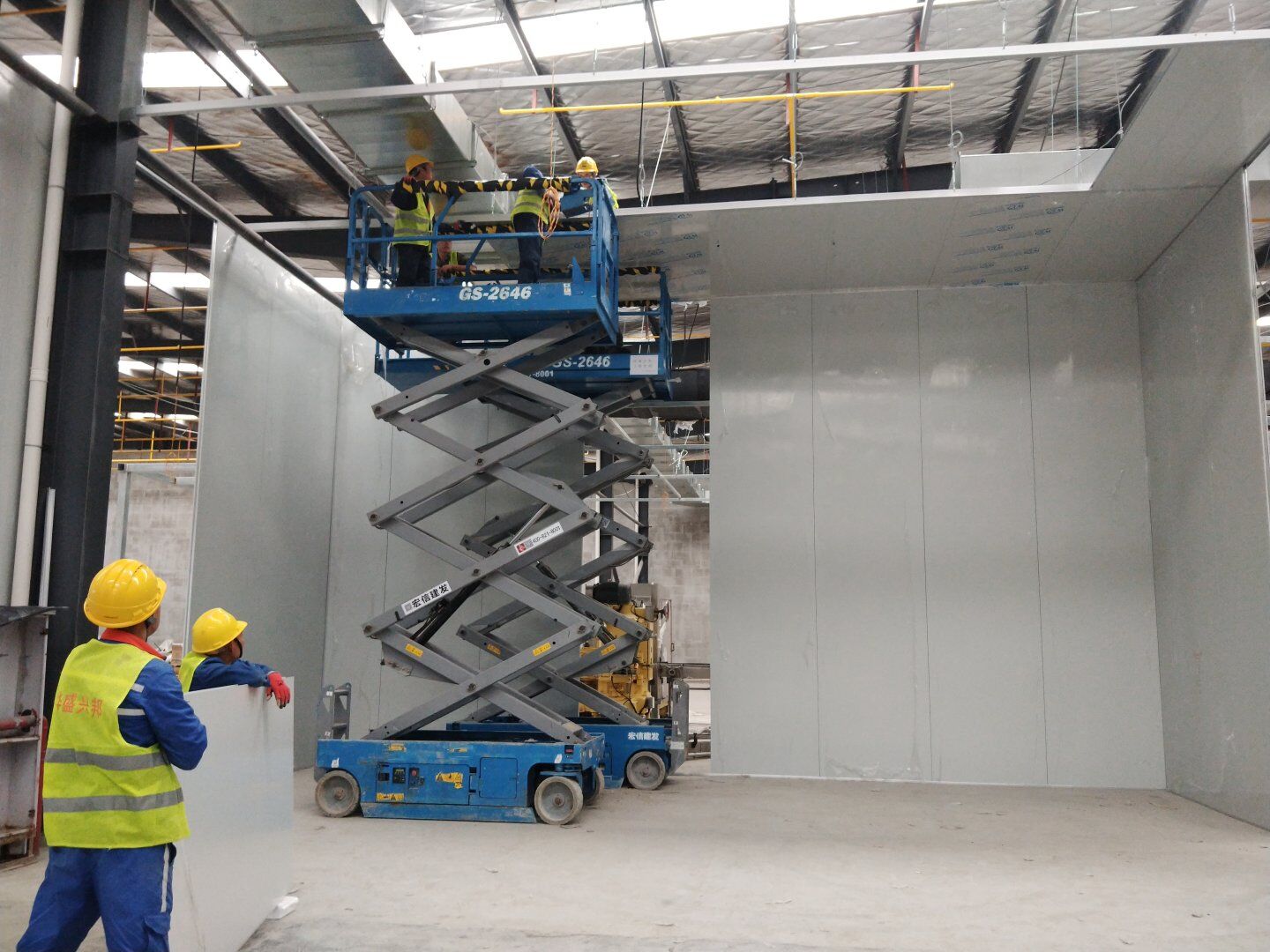 1,除預留設備通道外的彩鋼板墻板完成; 2,彩鋼板頂板完成80%。