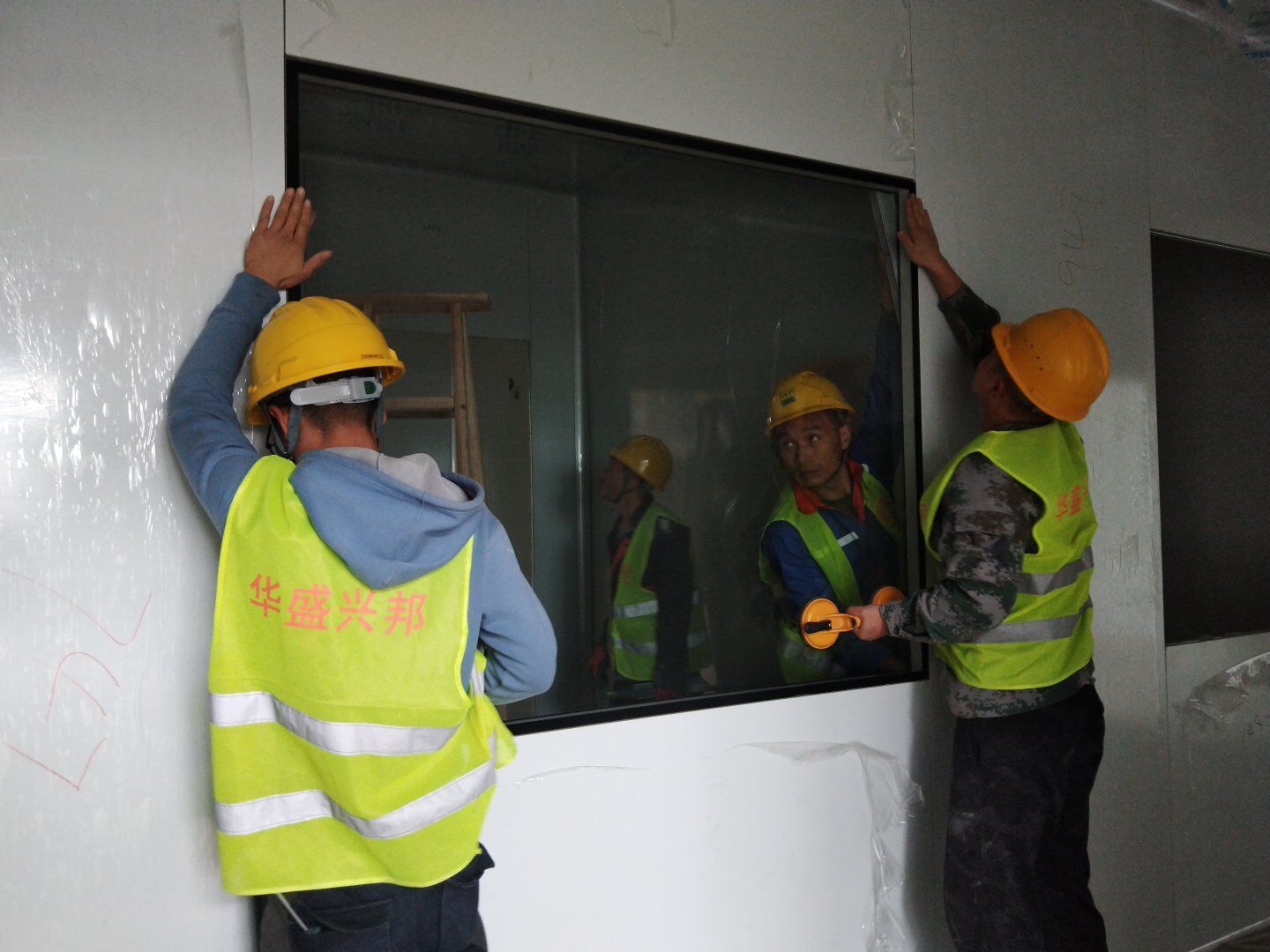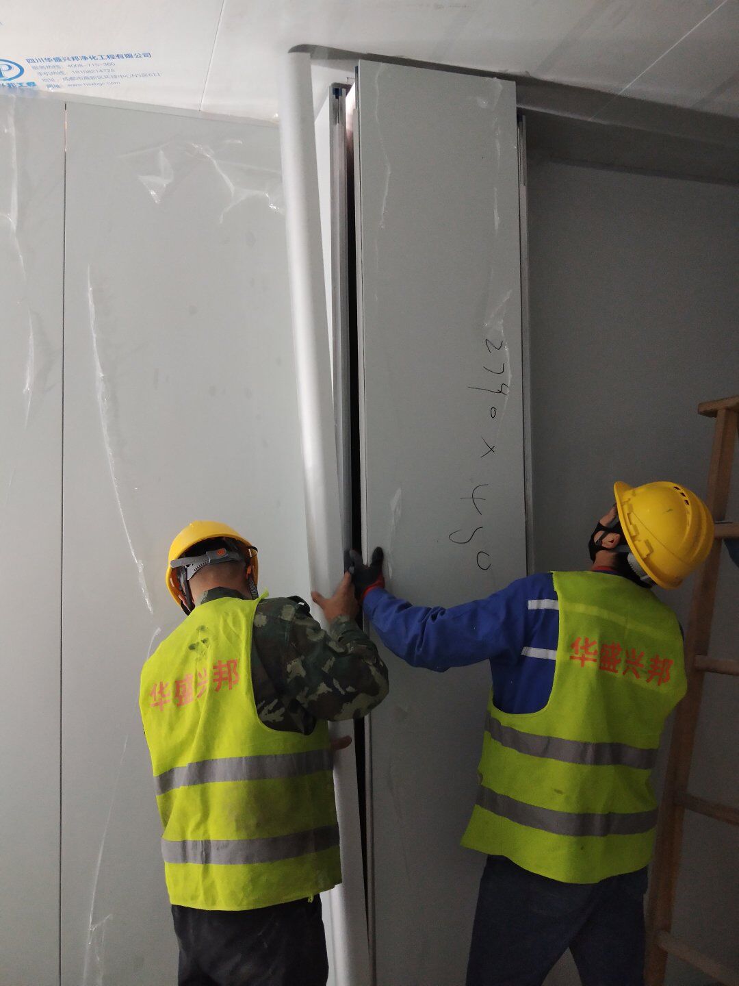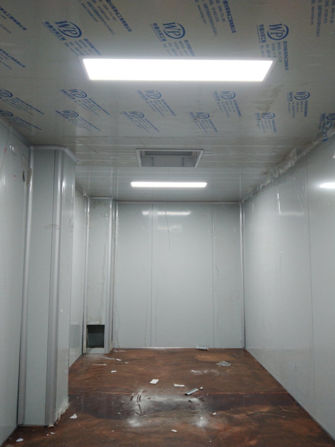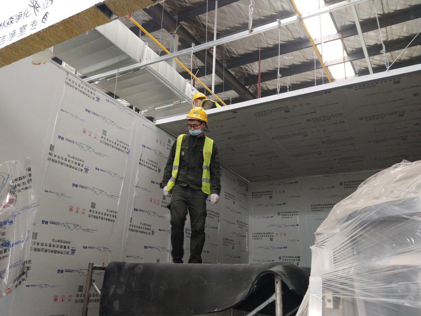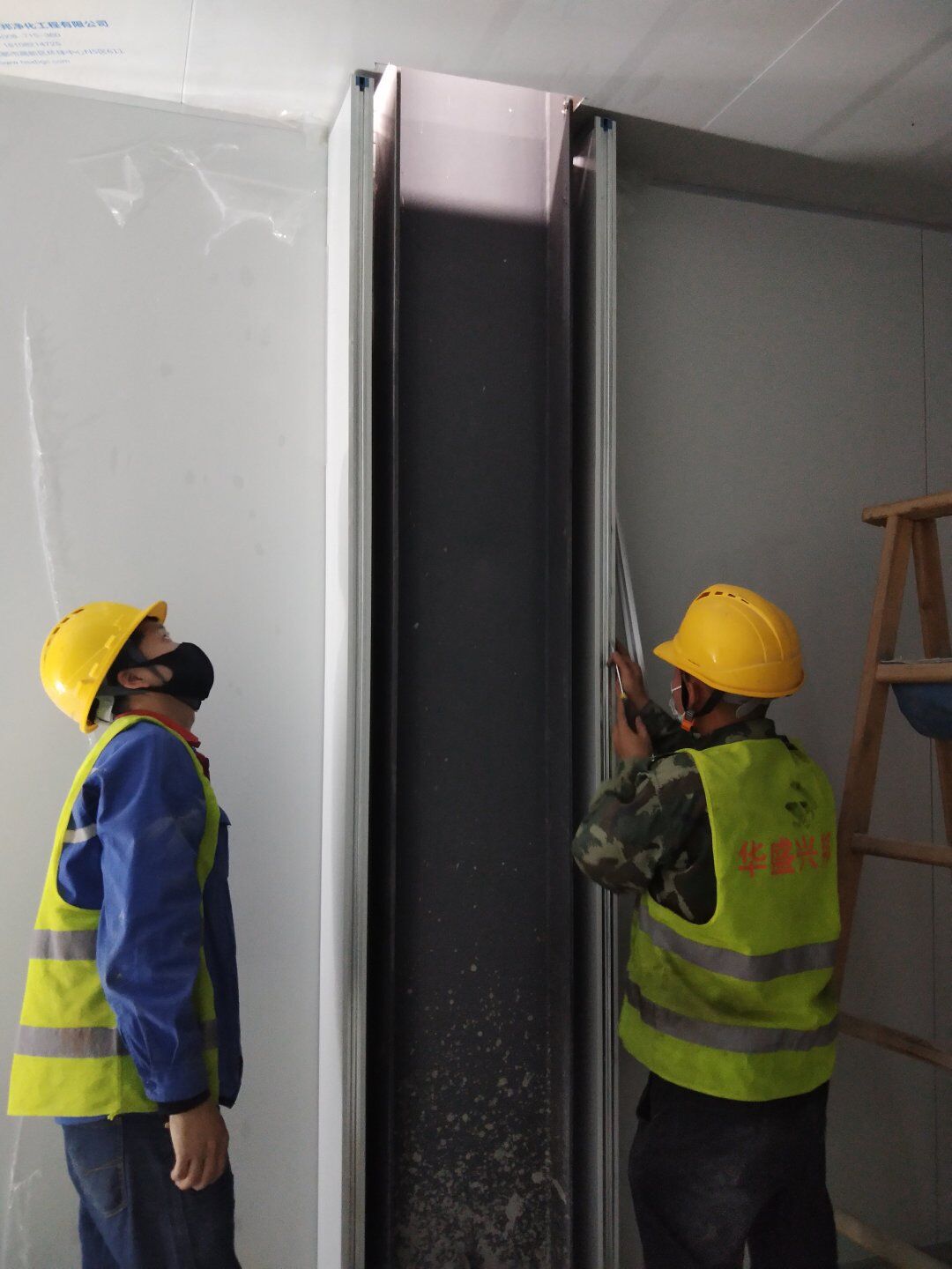 1,彩鋼板墻板完成75% 2,回風夾道安裝,撕膜,打膠完成15% 3,潔凈窗安裝完成60%。