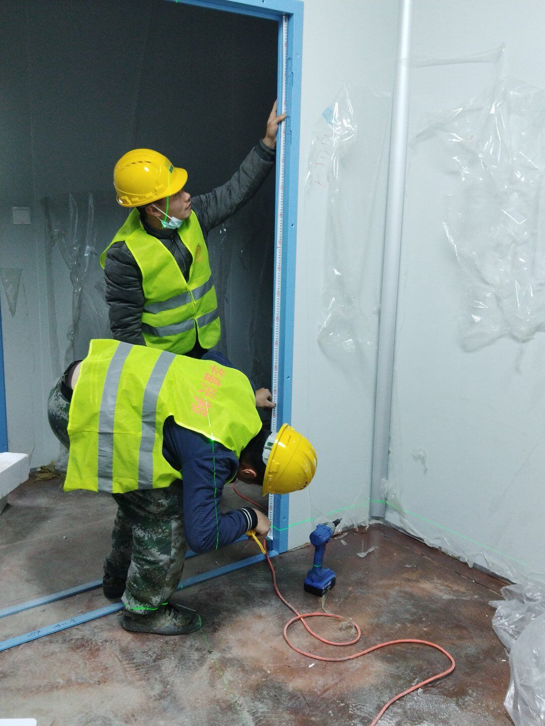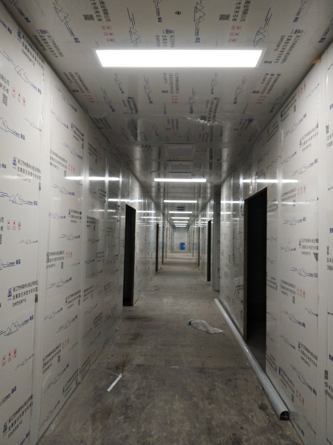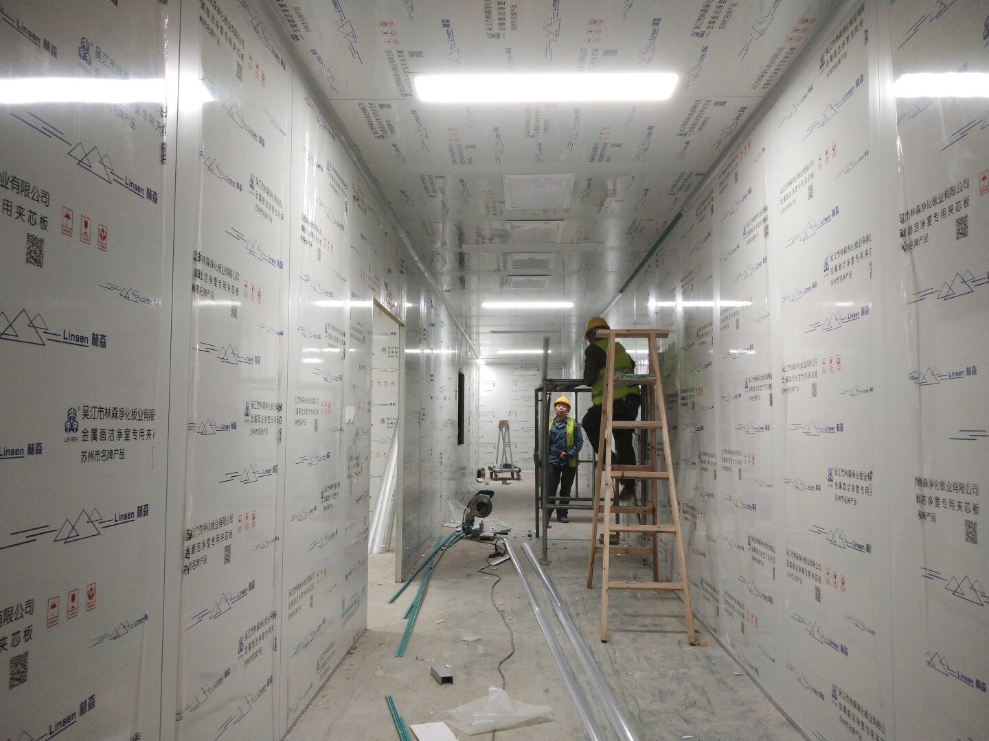 1,潔凈鋼質門安裝完成70% 2,電氣配管穿線完成65%,插座及開關安裝完成75%,照明通電完成30% 3,高效箱保溫完成80%。