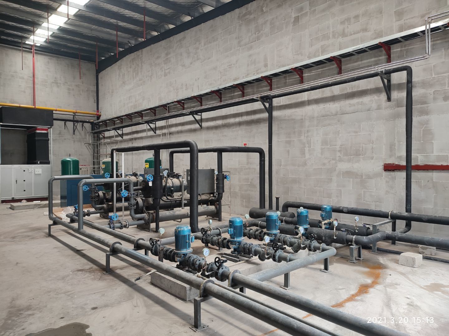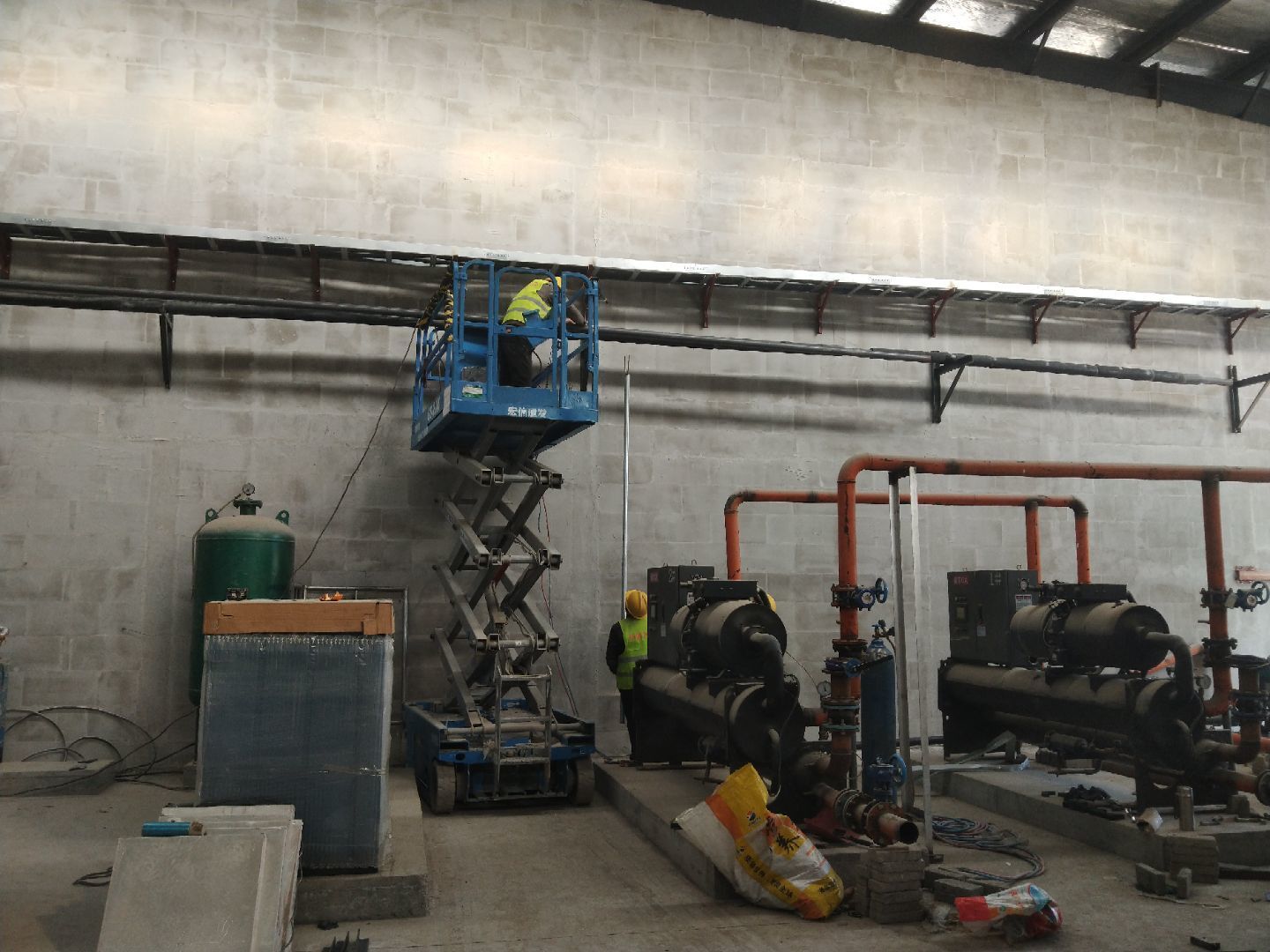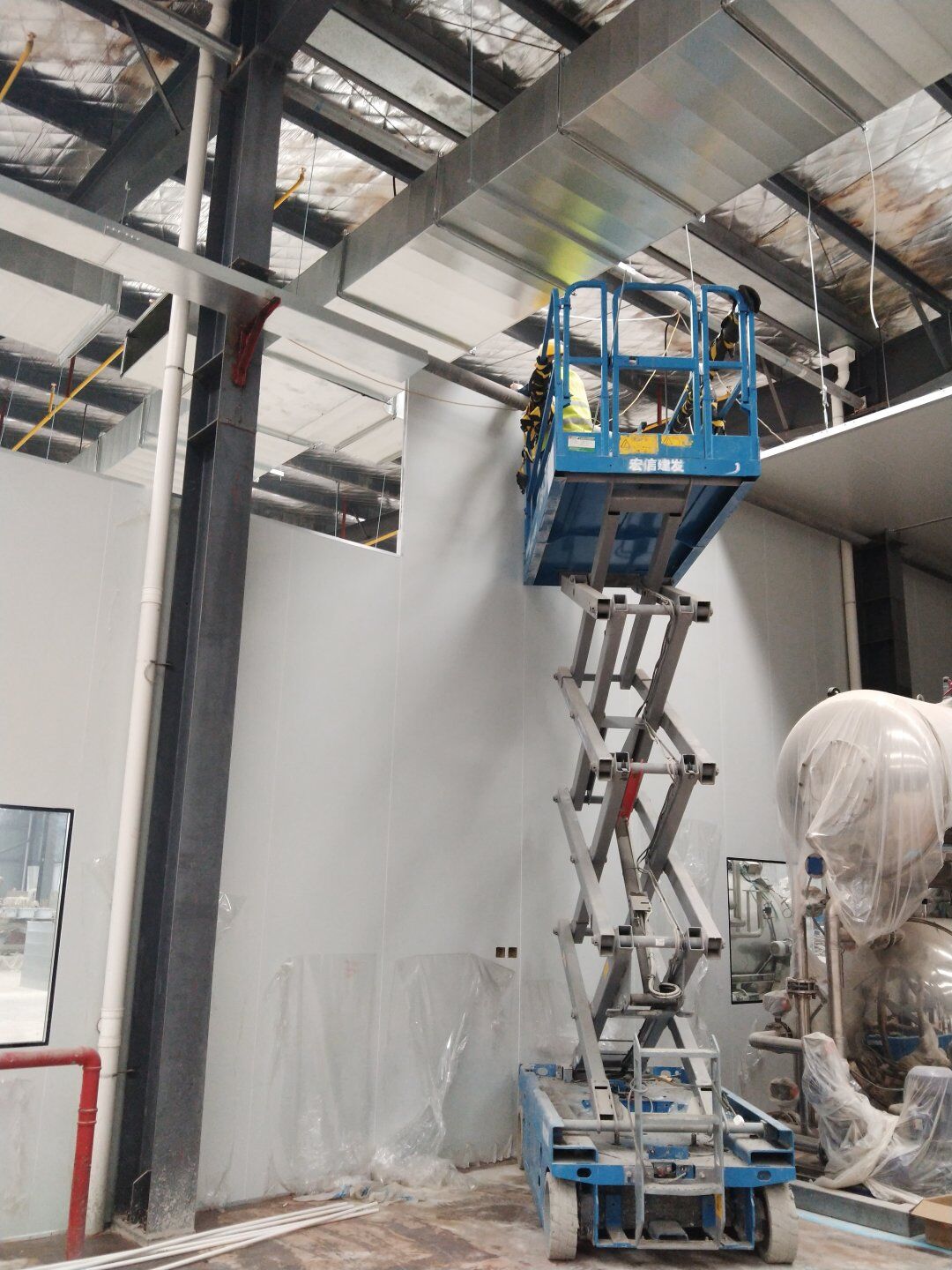 1,立墻板完成15%; 2,主風管及干管保溫完成。
