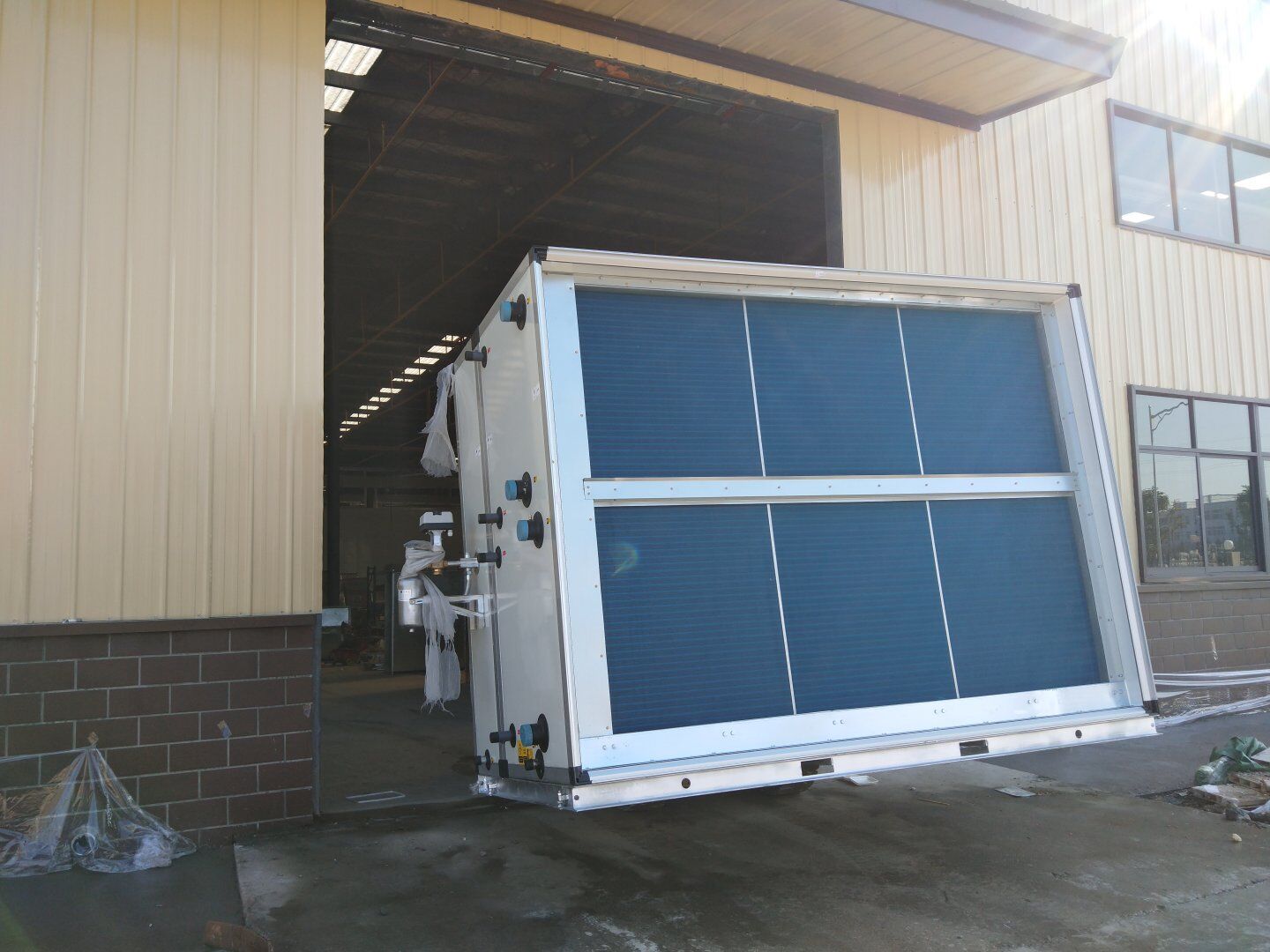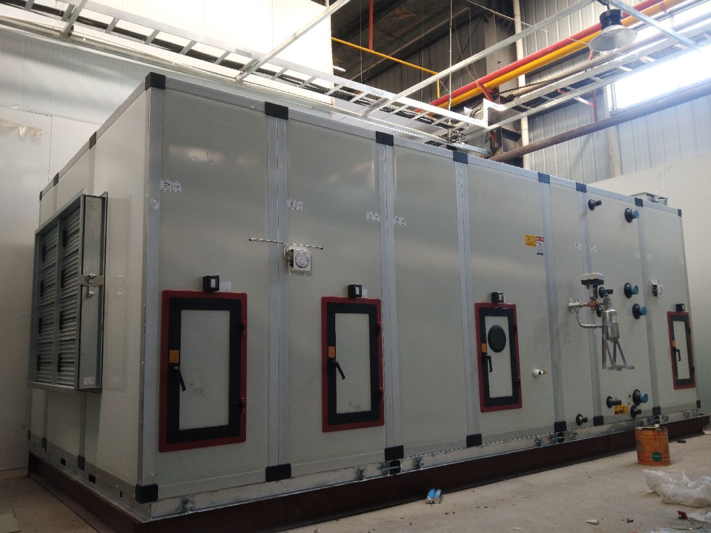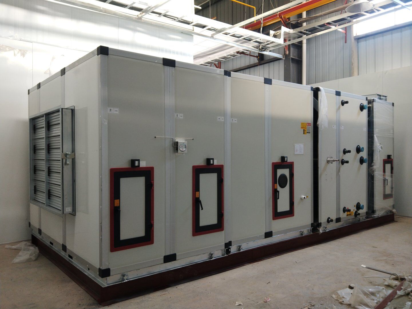液體車間: 1,空調水管保溫完成70% 2,微壓差計安裝完成,傳遞窗安裝完成; 3,碰頭風管按系統歸類完成70%,準備清洗。 飲片車間: 1,空調水管滲水處補漏完成,模塊機溫感探頭,水流開關安裝完成; 2,空調風管保溫完成75%