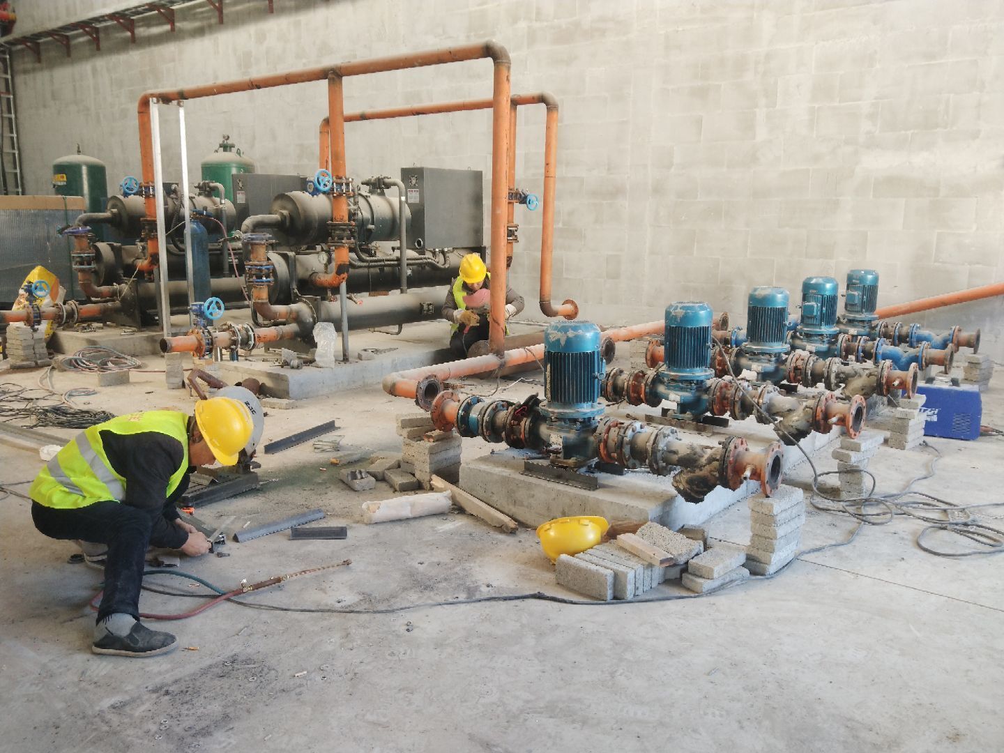 1、空調水系統完成并完成打壓并讓甲方見證; 2、碰頭風管清洗,安裝完成60%; 3、飲片車間: 空調水系統完成并打壓見證; 空調風管安裝完成。