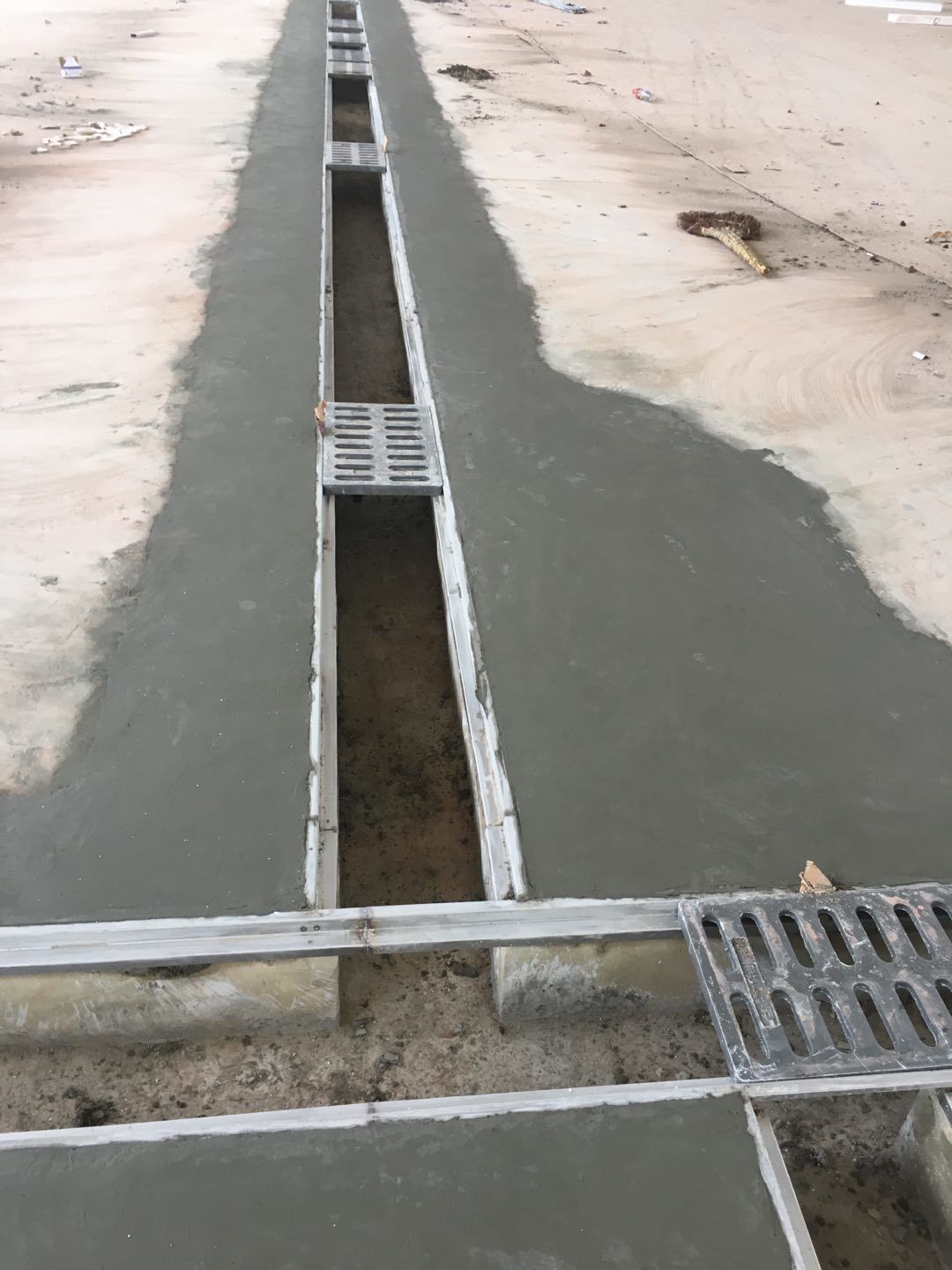 彩鋼頂板除預留外完成100%門、窗、各完成100%地坪固化處理,完成100%,排水溝環氧完成30%圓狐及底座同時完成95水,電、完成95%