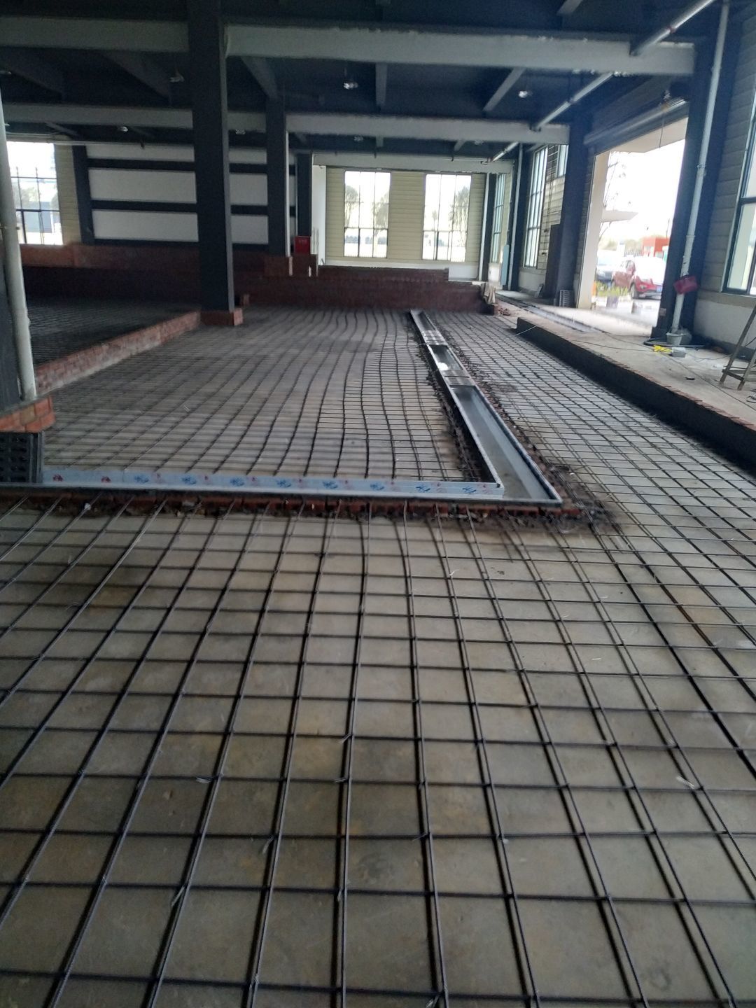 鋼筋攤鋪完成,綁扎完成,基準線和控制線完成20%。