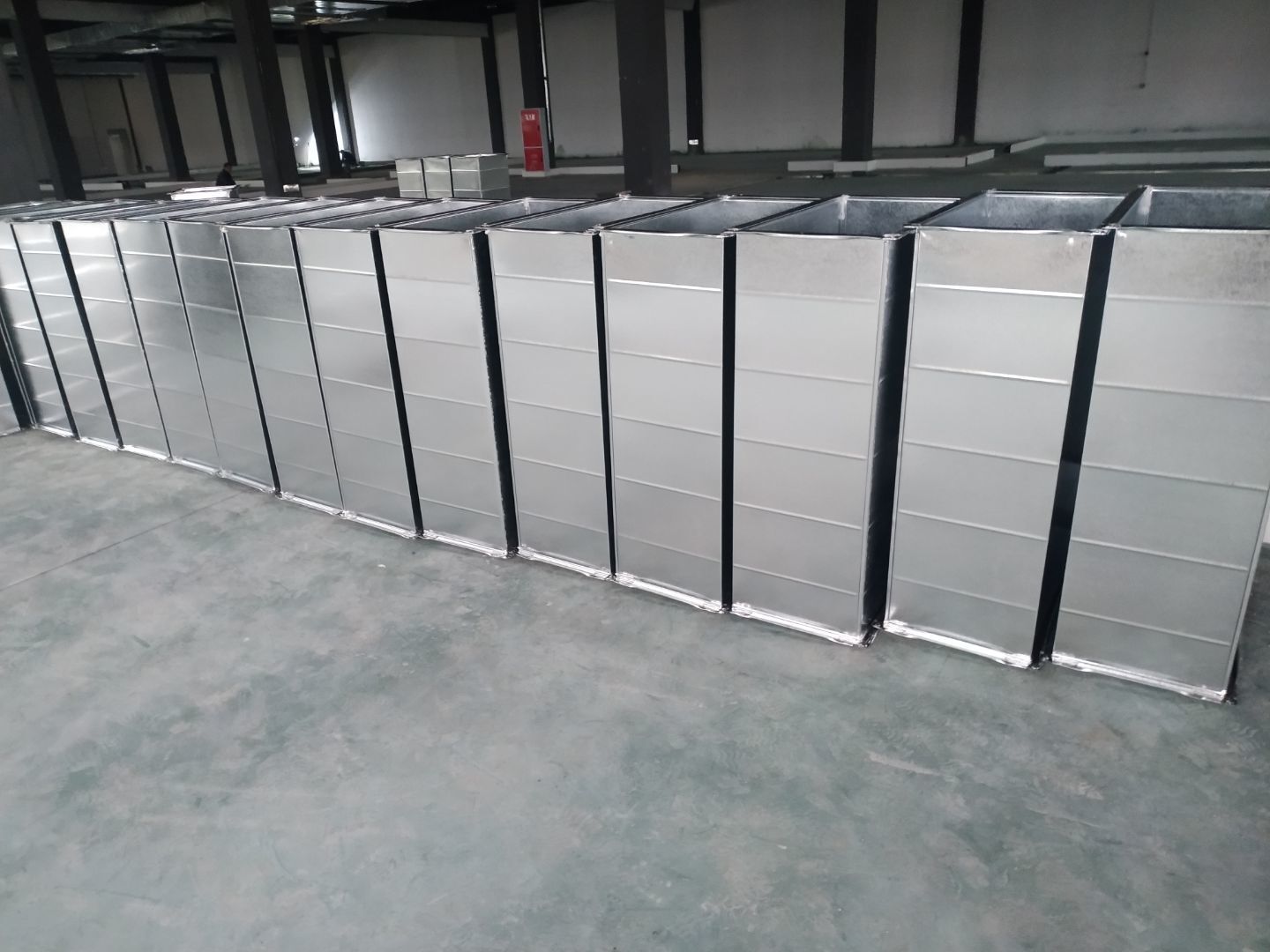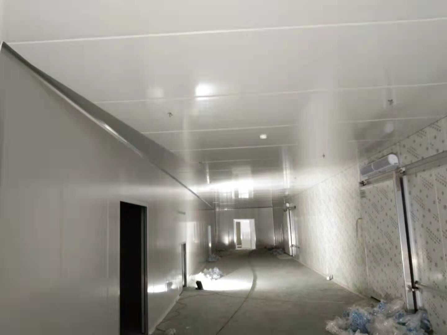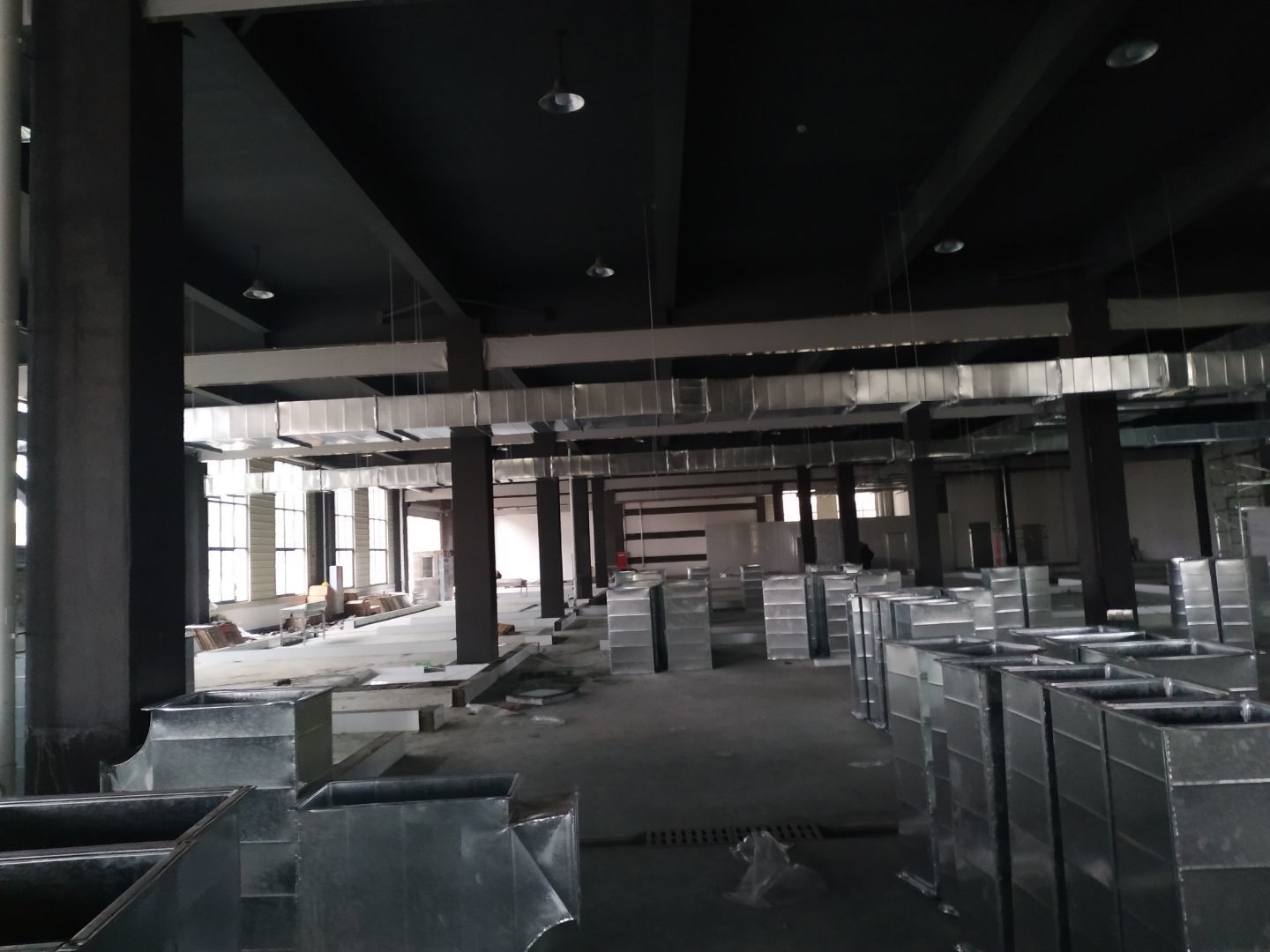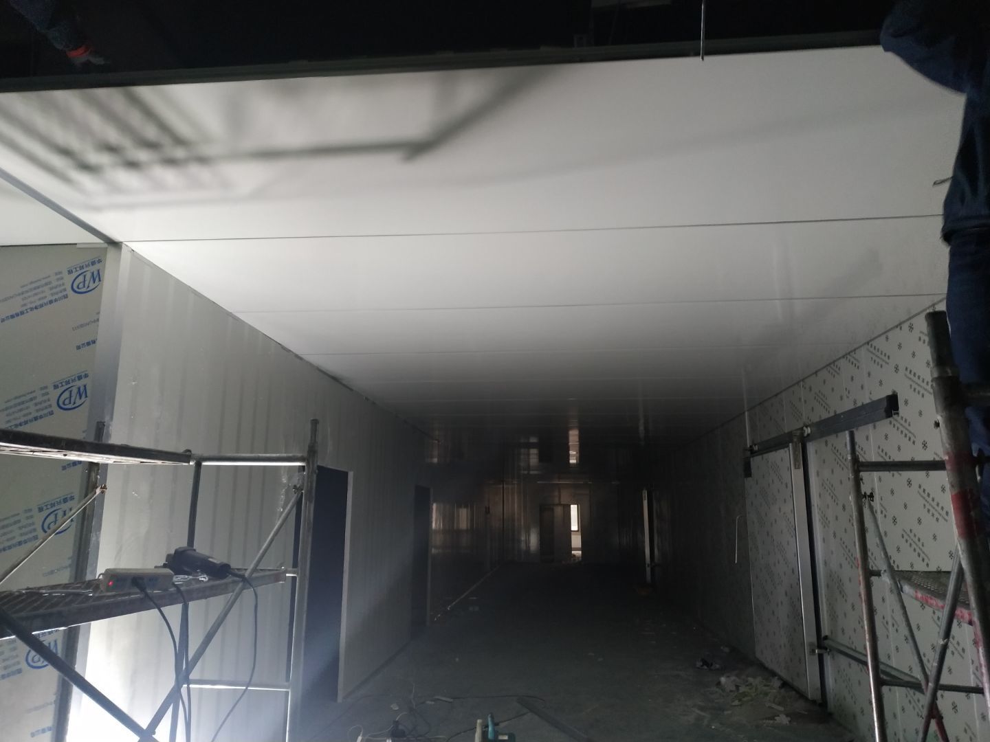 彩鋼板墻板安裝完成70%,頂板安裝完成30%,風管安裝完成70%。