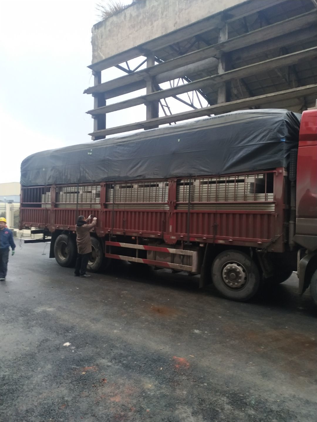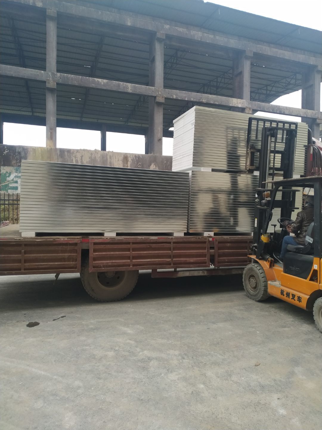 第三車板材到場卸貨,墻板安裝完成55%,吊筋安裝完成60%。