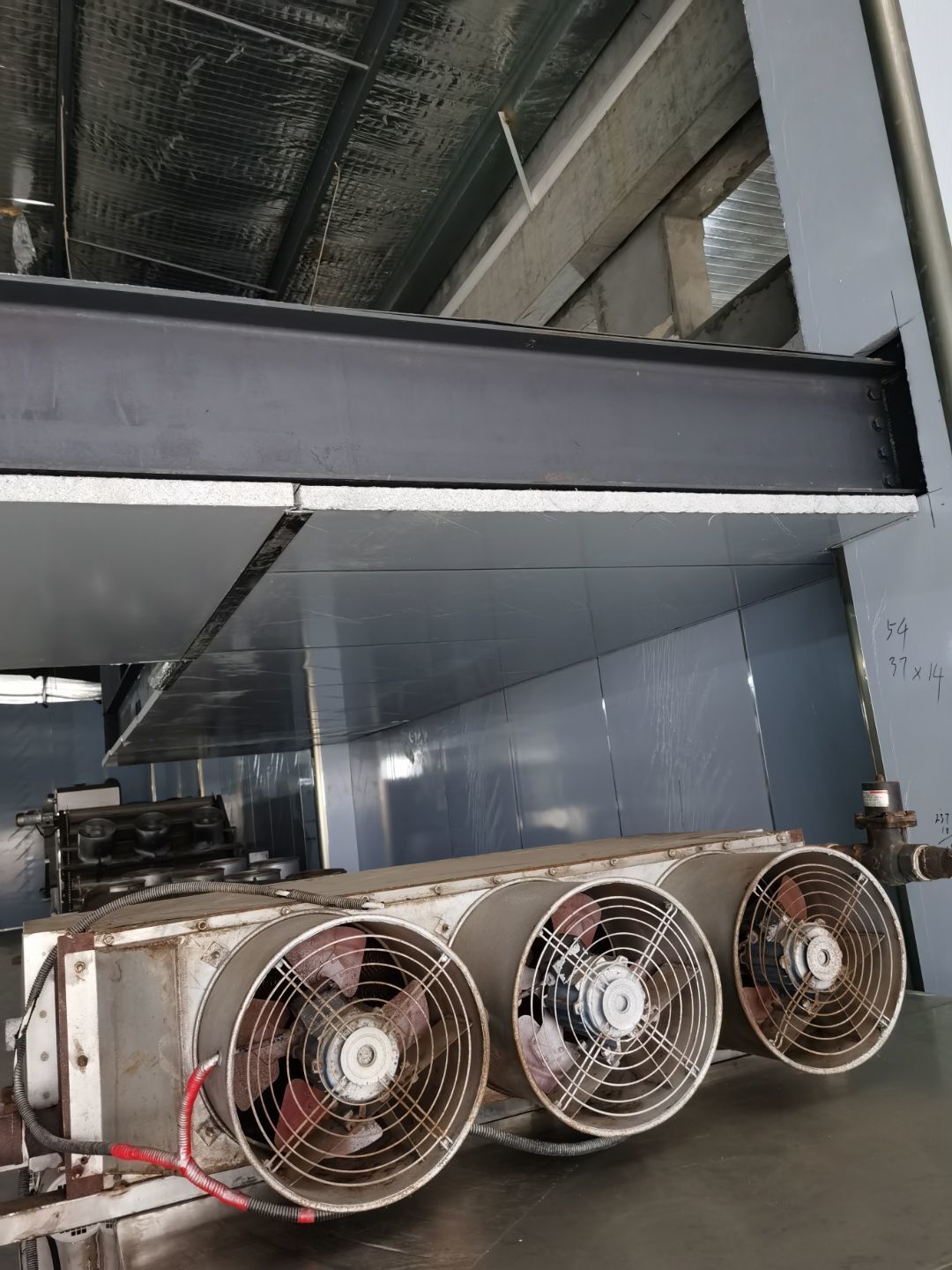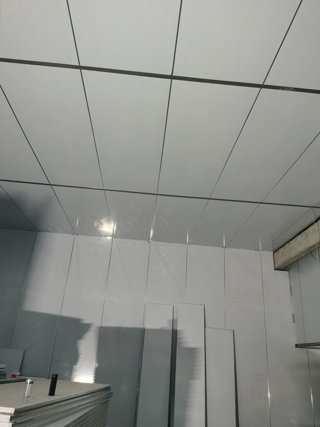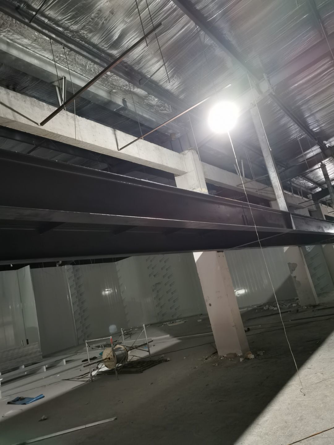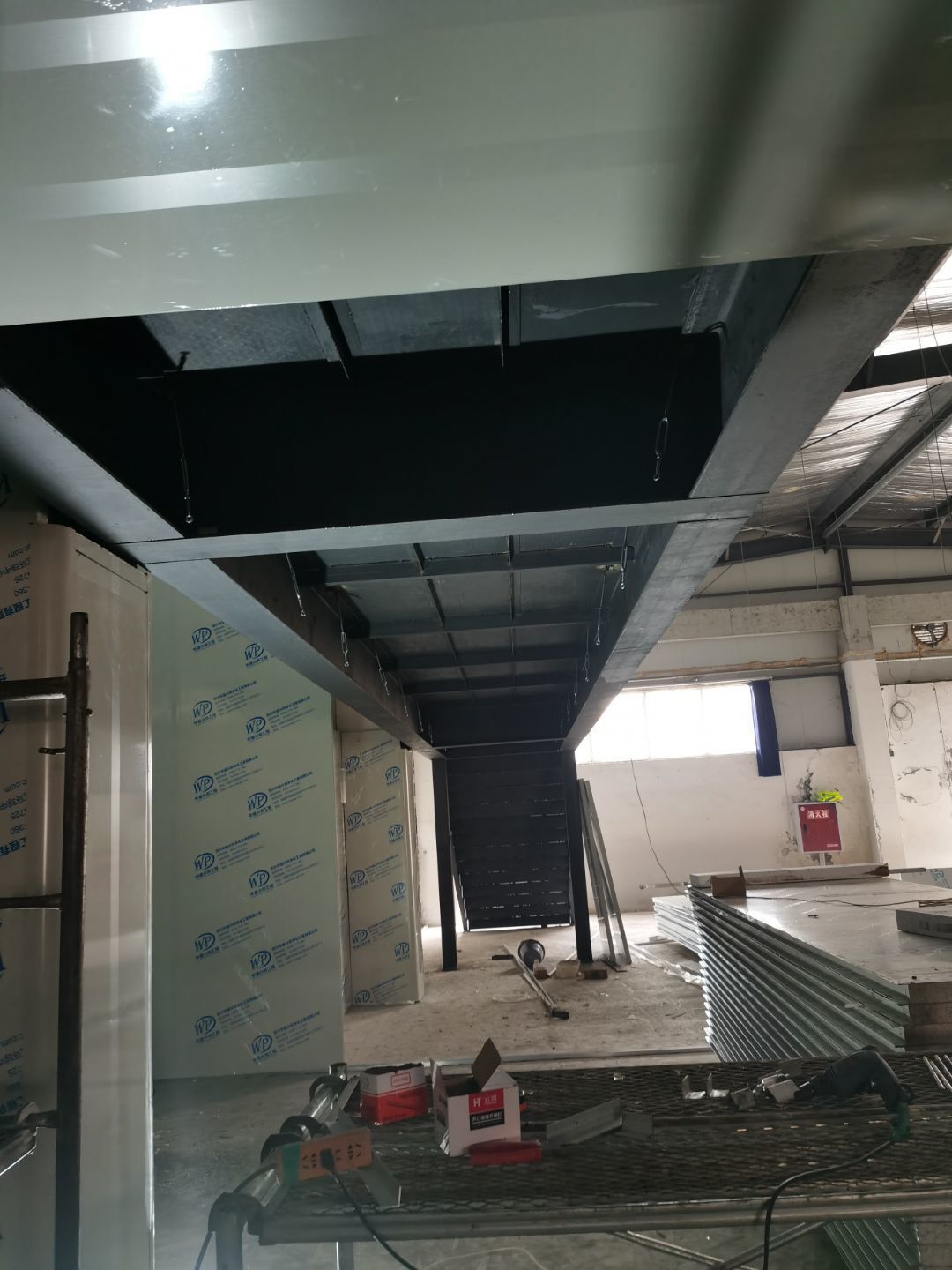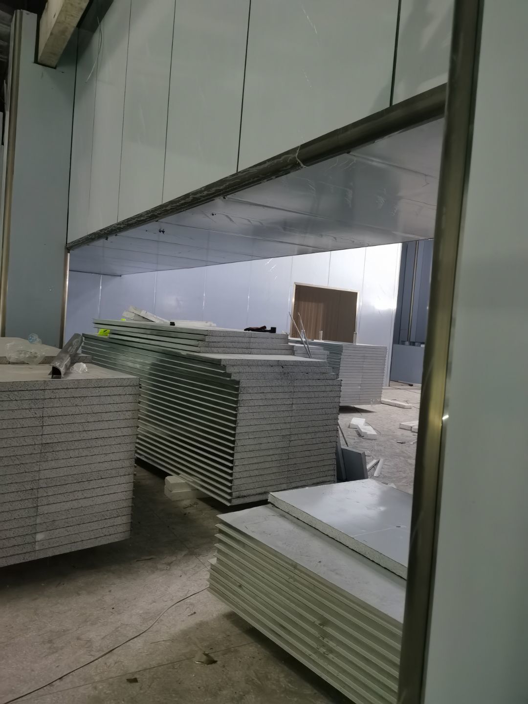 1、化學螺栓鋼板預埋,2、凍庫材料進場