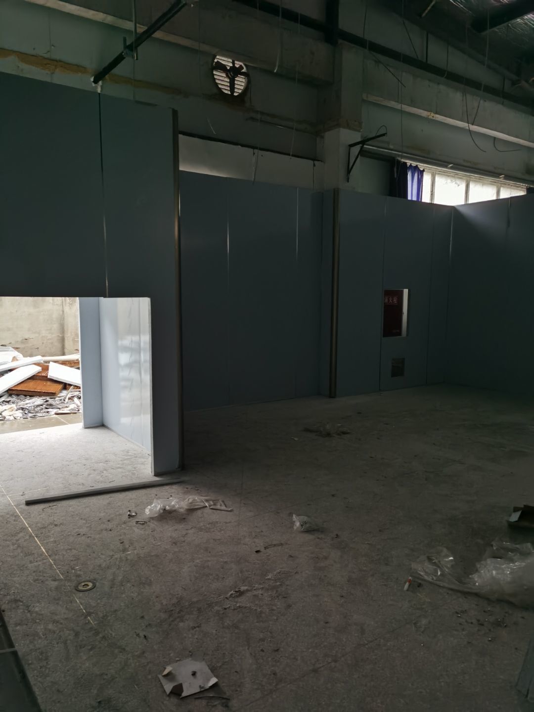 1、鋼接構完成70%;2、凍庫完成100%;3、彩鋼板開始立墻板