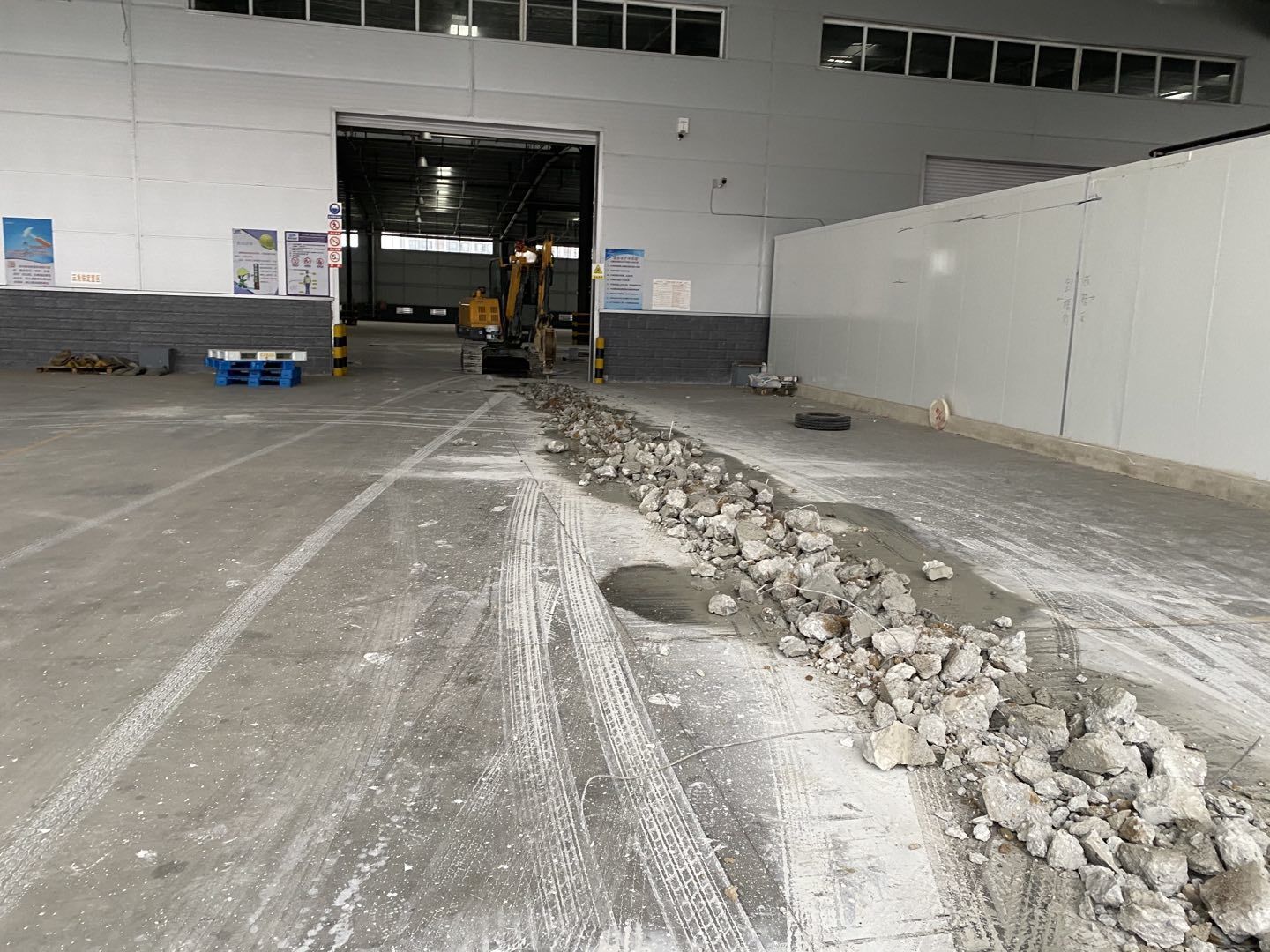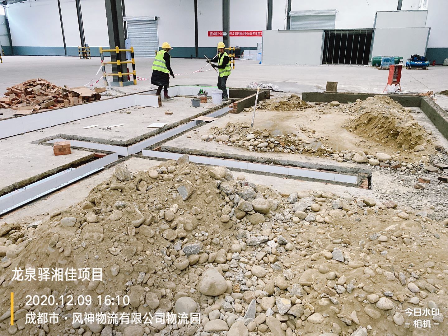 1.排水管道開挖破碎80米。 2.吊頂鋼繩安裝完成百分之40.
