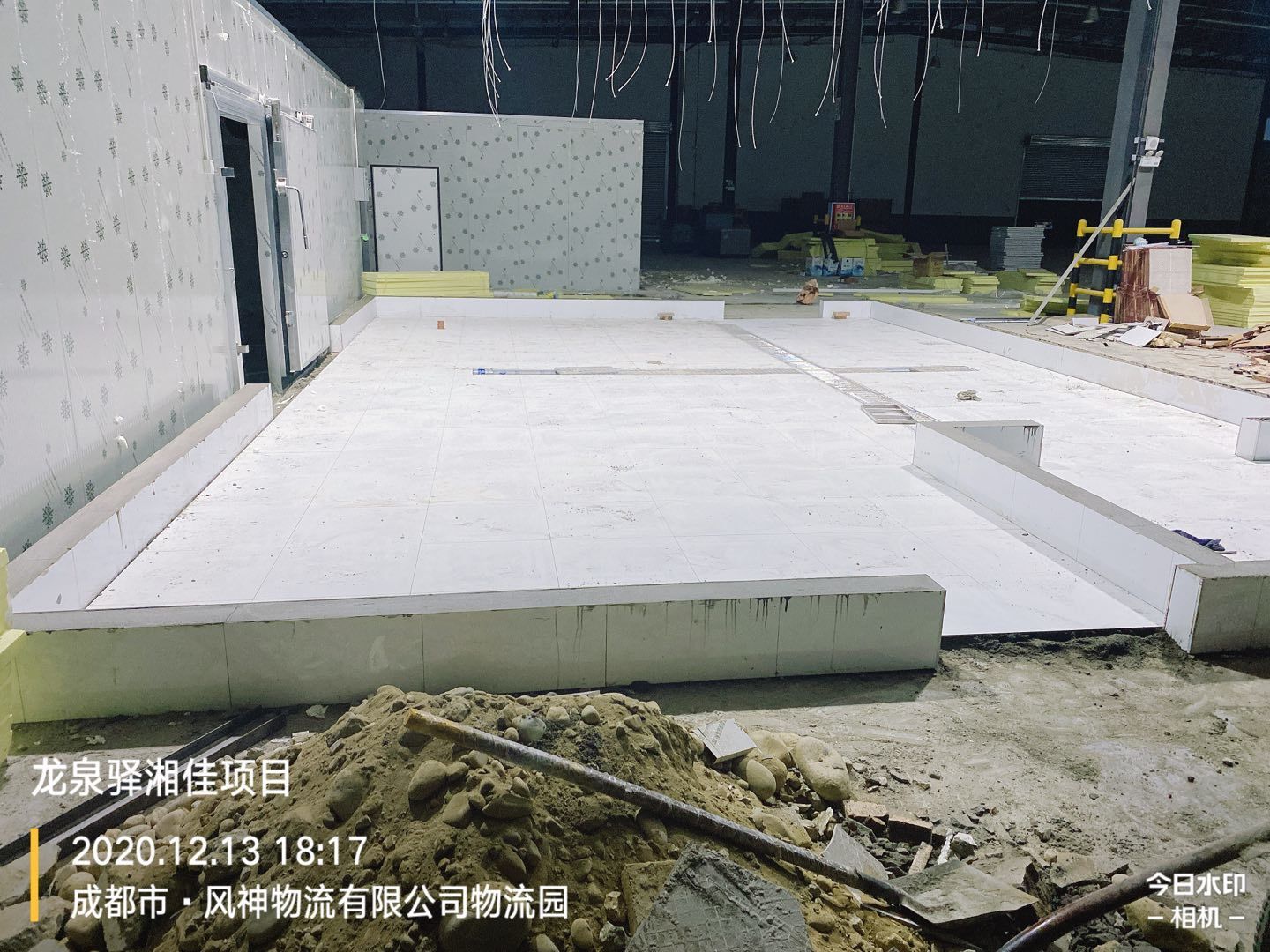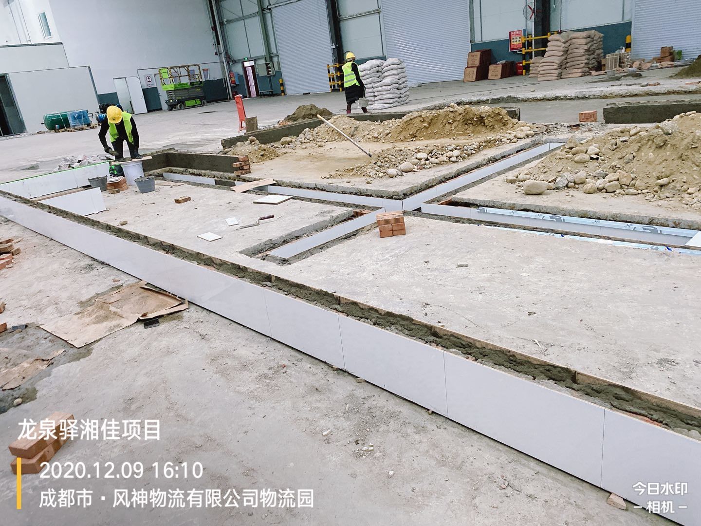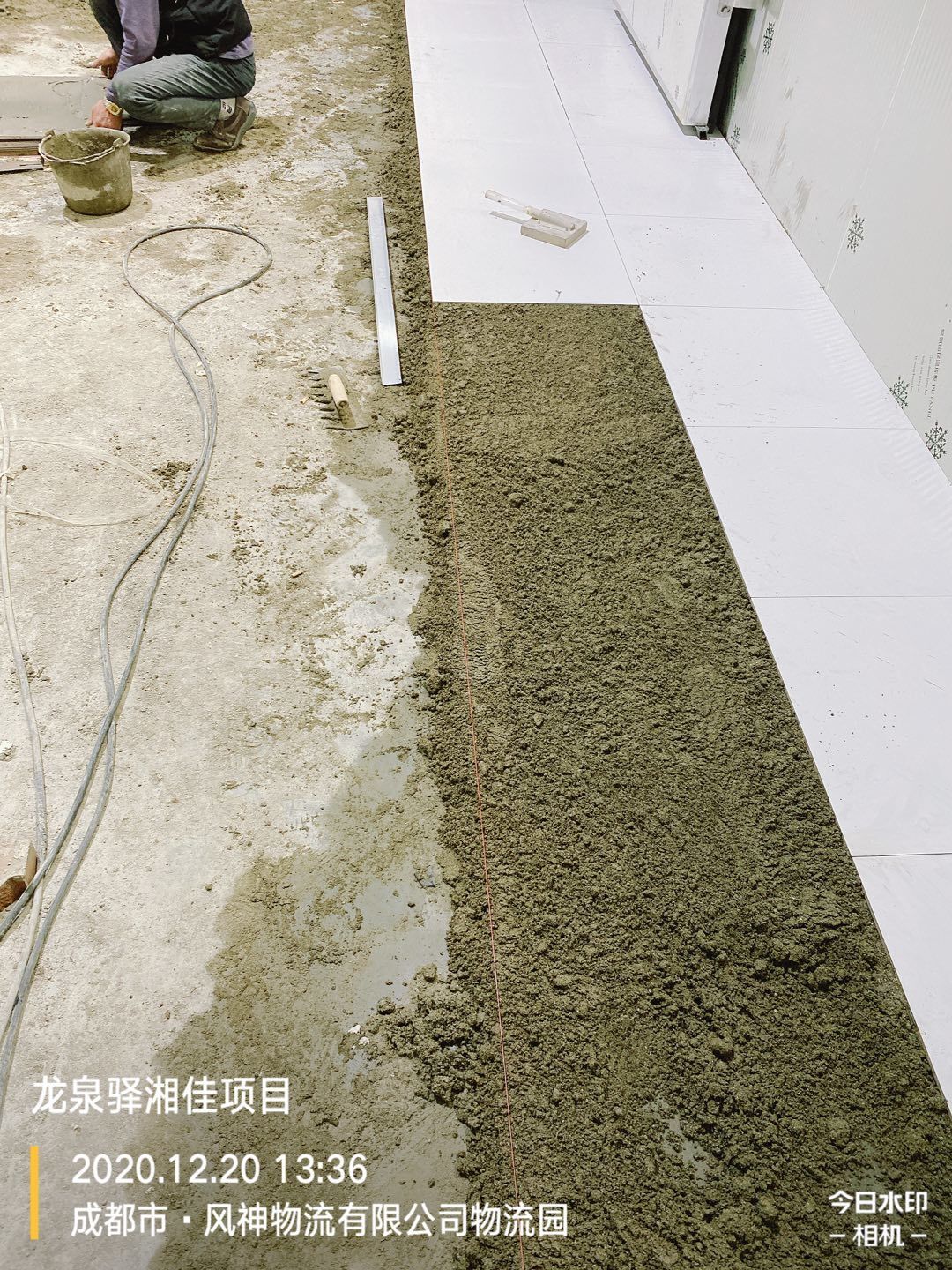 前處理間地板磚施工完成,回填土二次澆水夯實。
