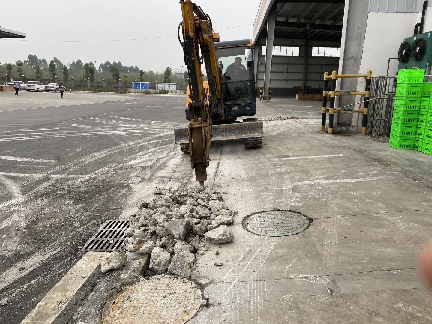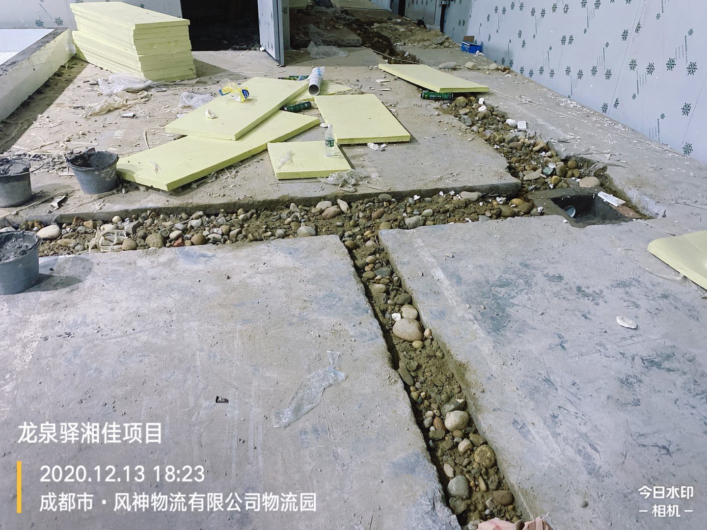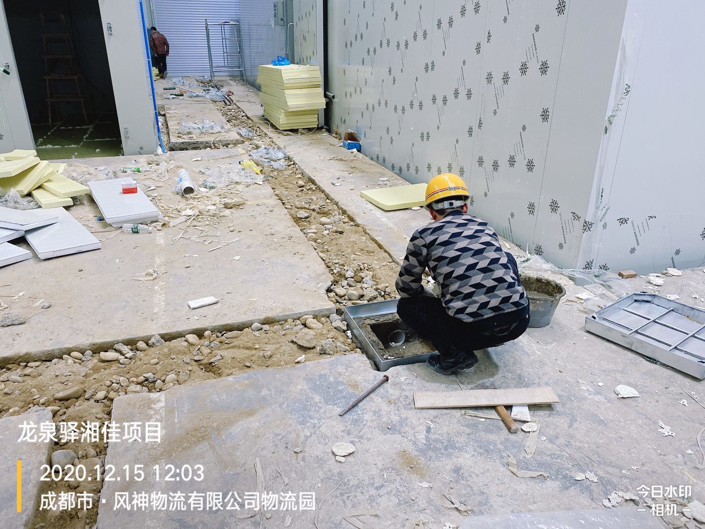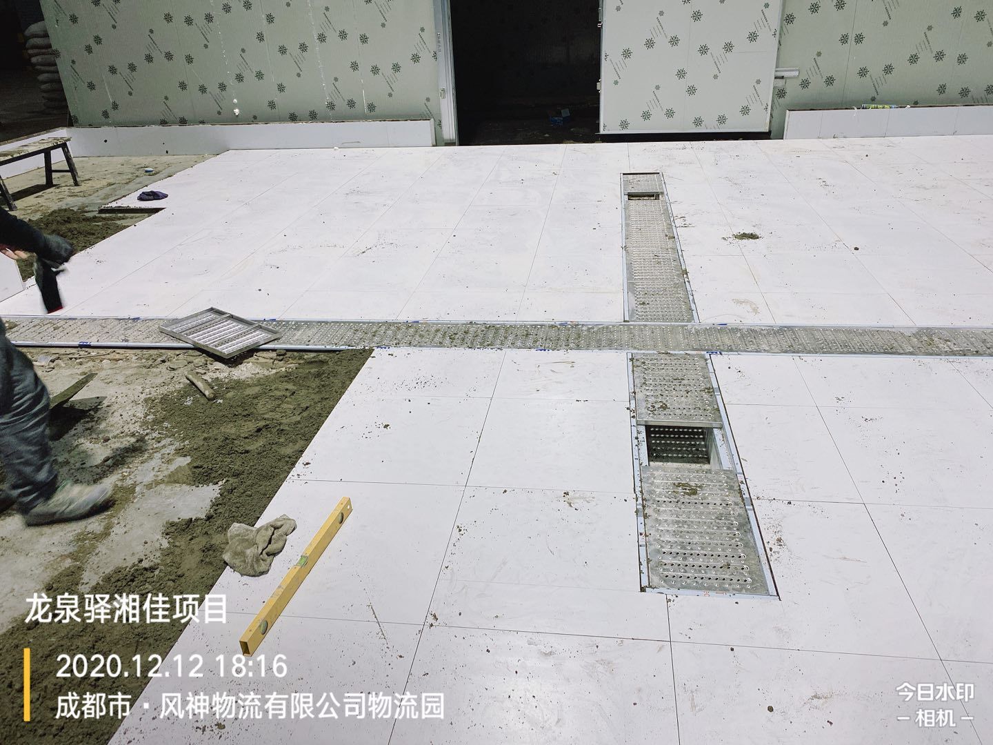 前處理間地板磚施工完成,回填土二次澆水夯實。