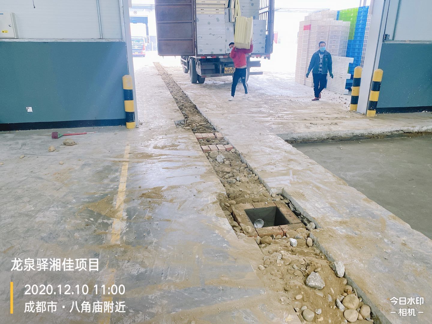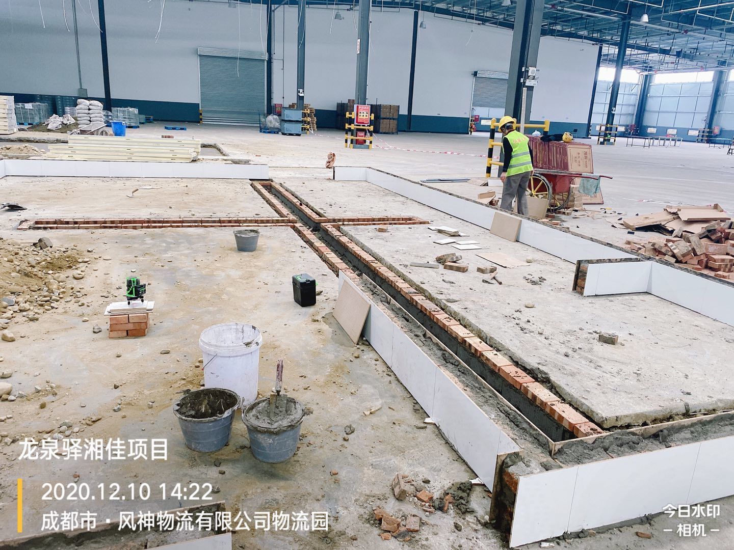 車間擋水墻瓷磚鋪貼完成70%,排水管埋設、土方回填完成,剩余土方清運離場完成60%。