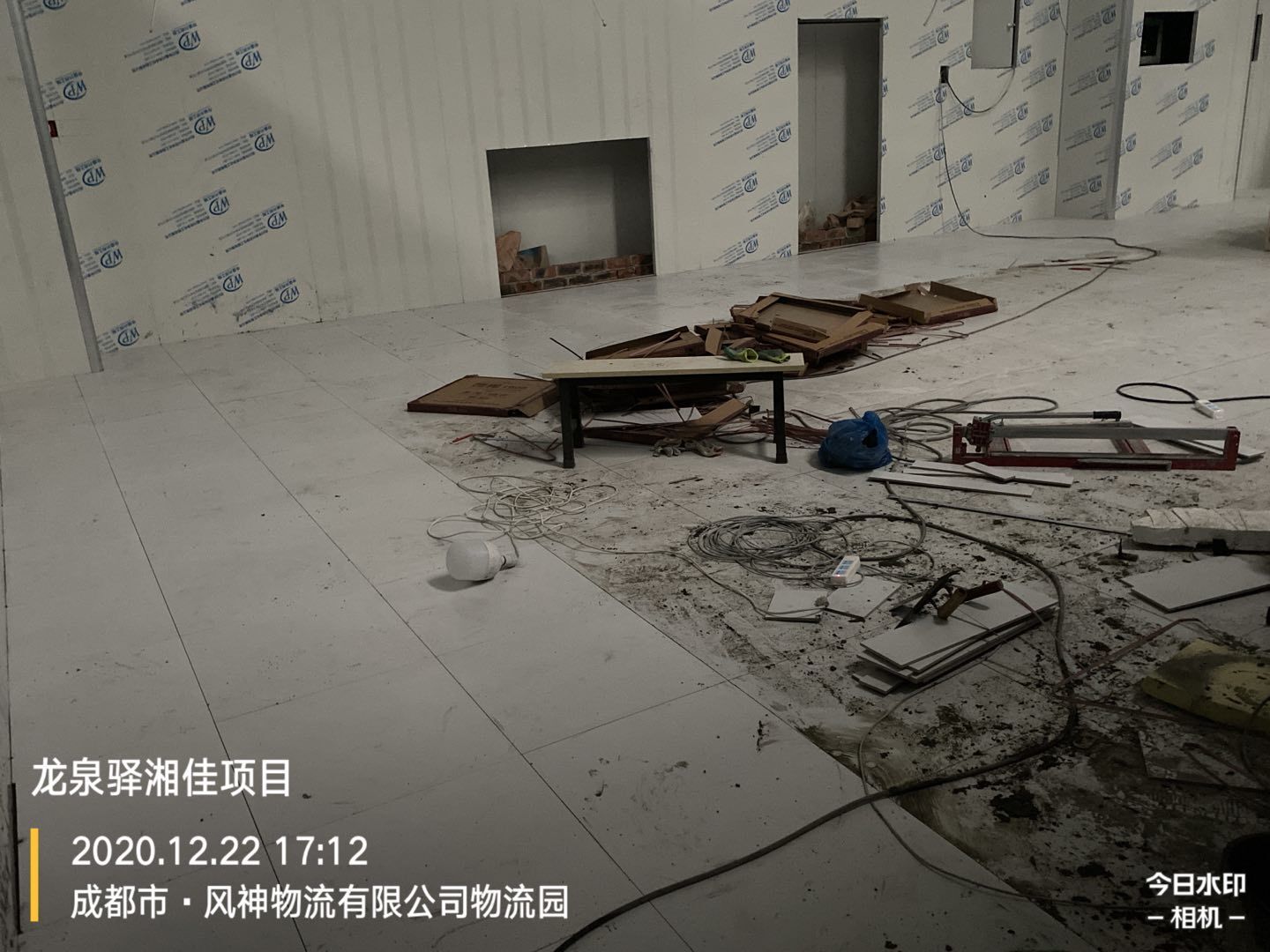 墻體打膠,地面瓷磚鋪設